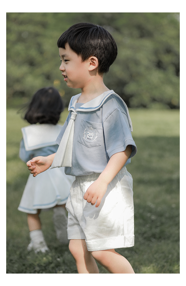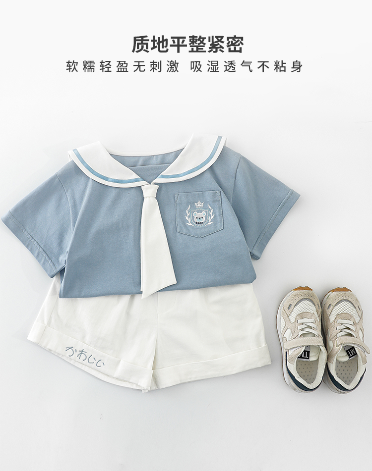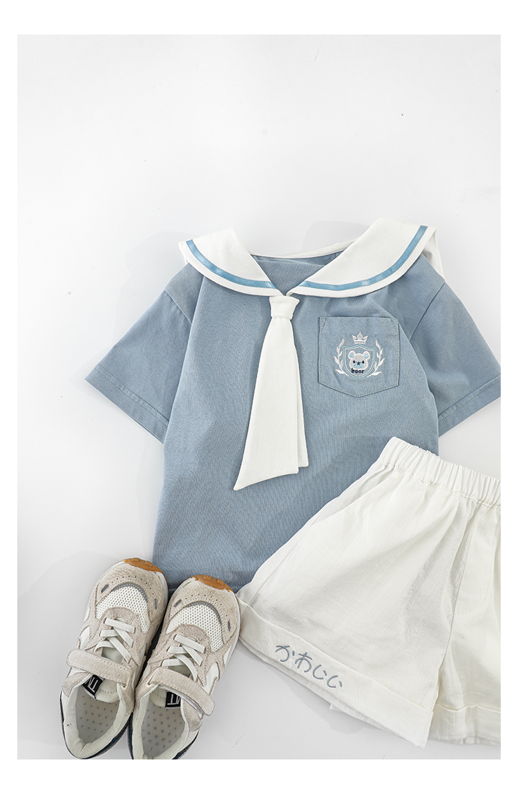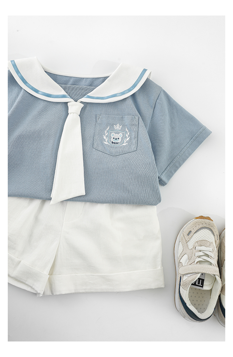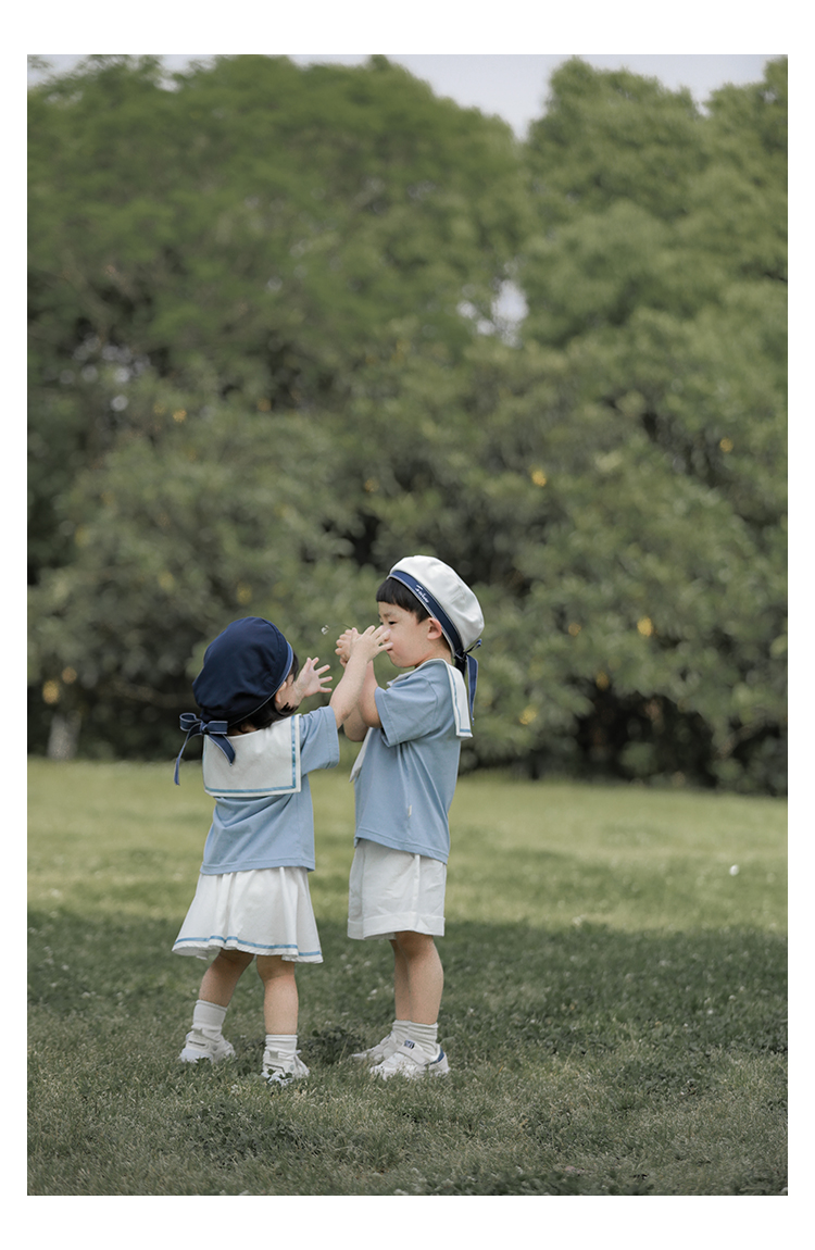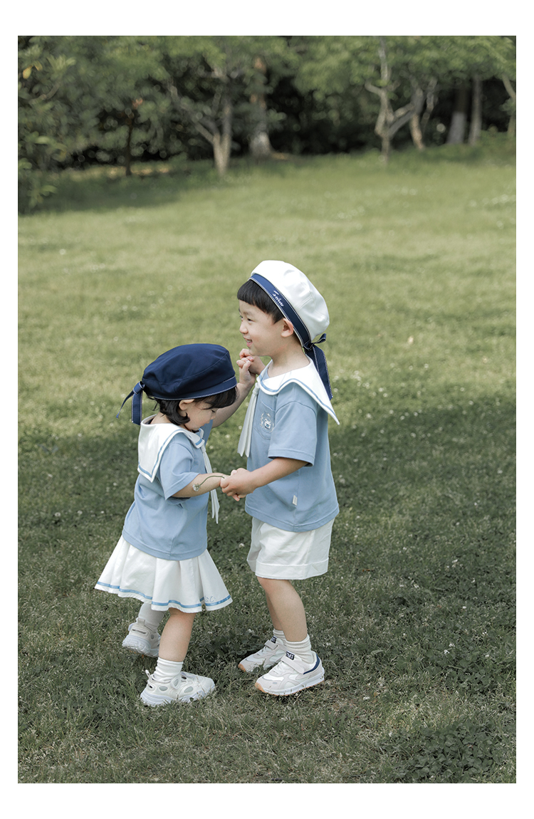 내 갈비뼈 형제와 자매 원피스 아카데미 스타일 세트 소년의 승무원 칼라 반팔 티셔츠 바지 아기 소녀 얇은 치마스토어 가기
