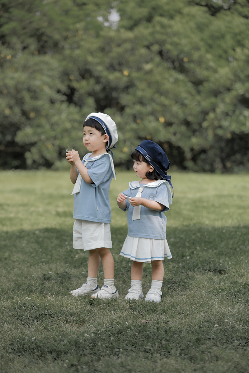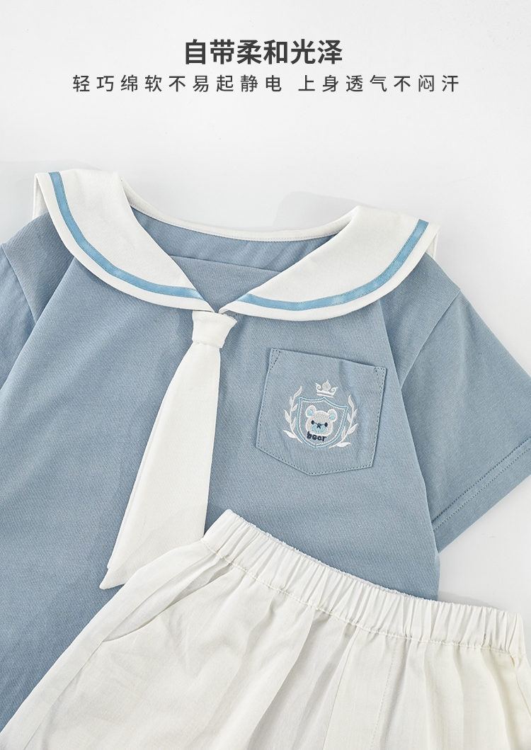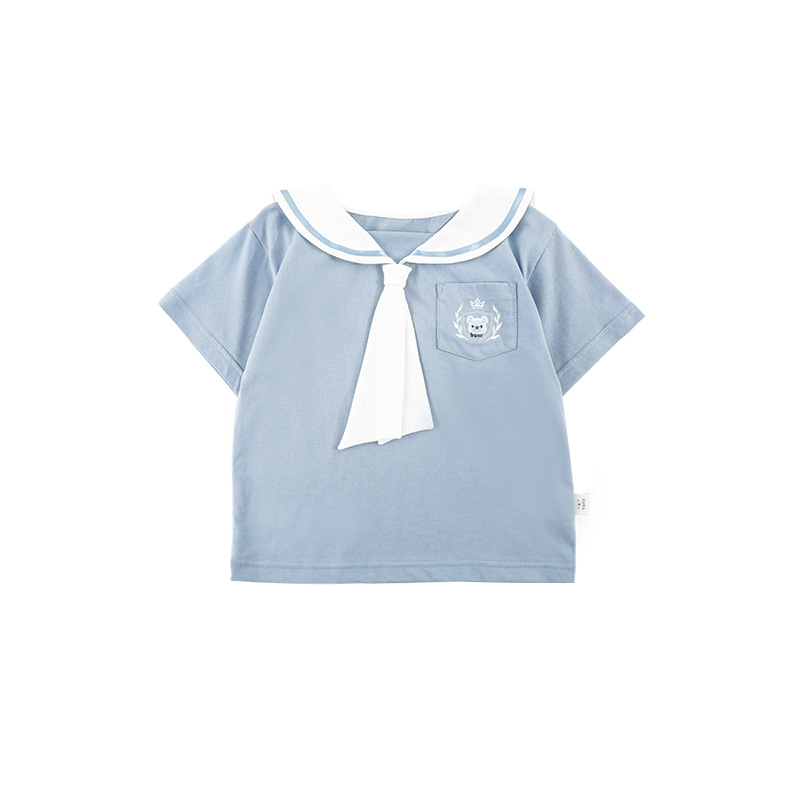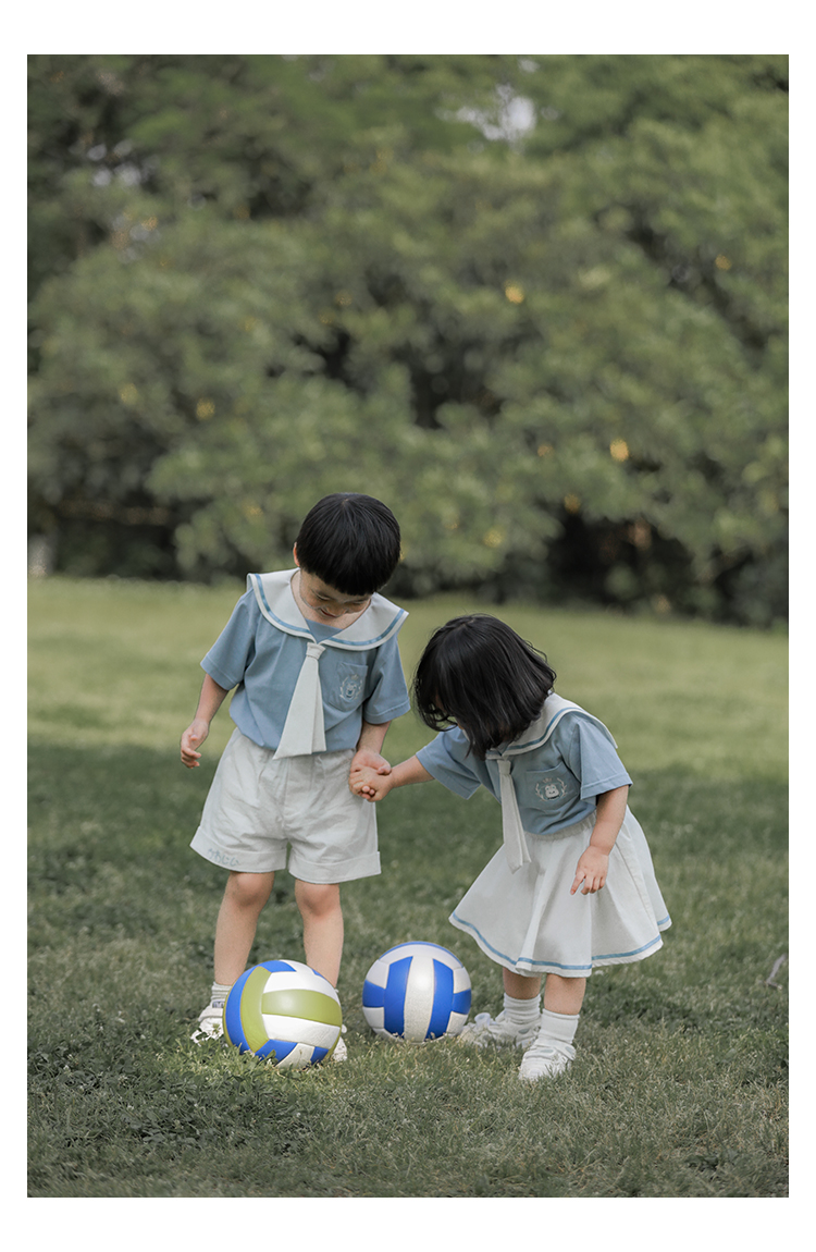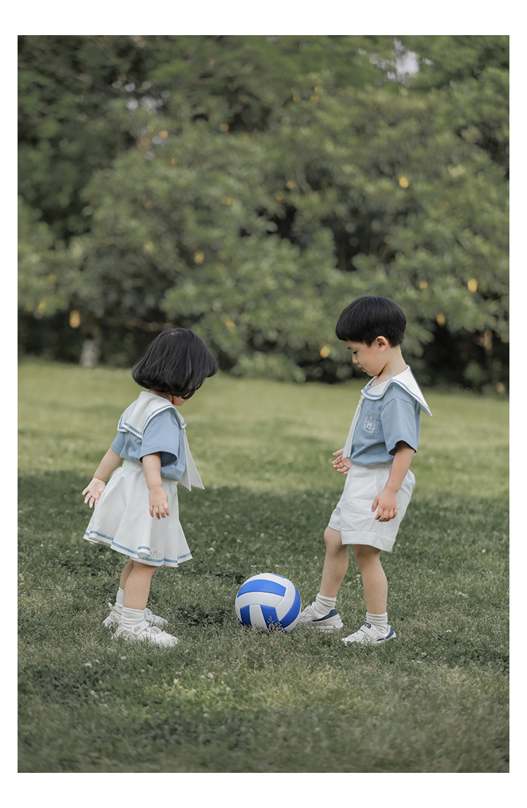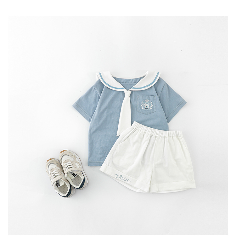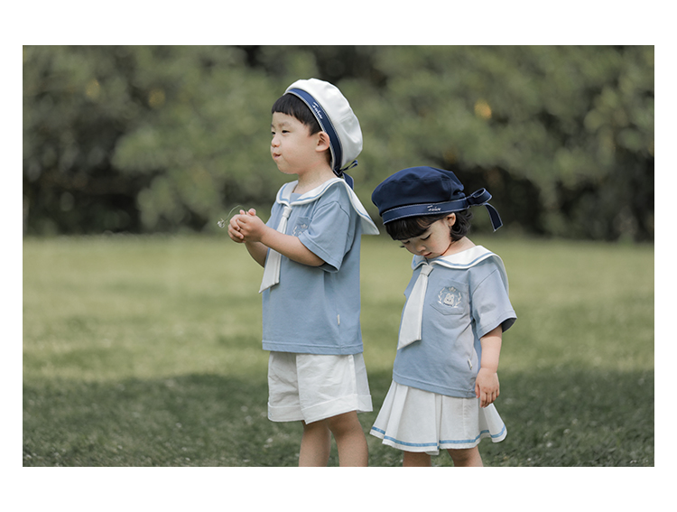 내 갈비뼈 형제와 자매 원피스 아카데미 스타일 세트 소년의 승무원 칼라 반팔 티셔츠 바지 아기 소녀 얇은 치마스토어 가기
