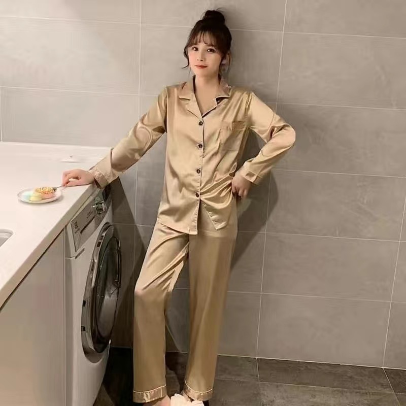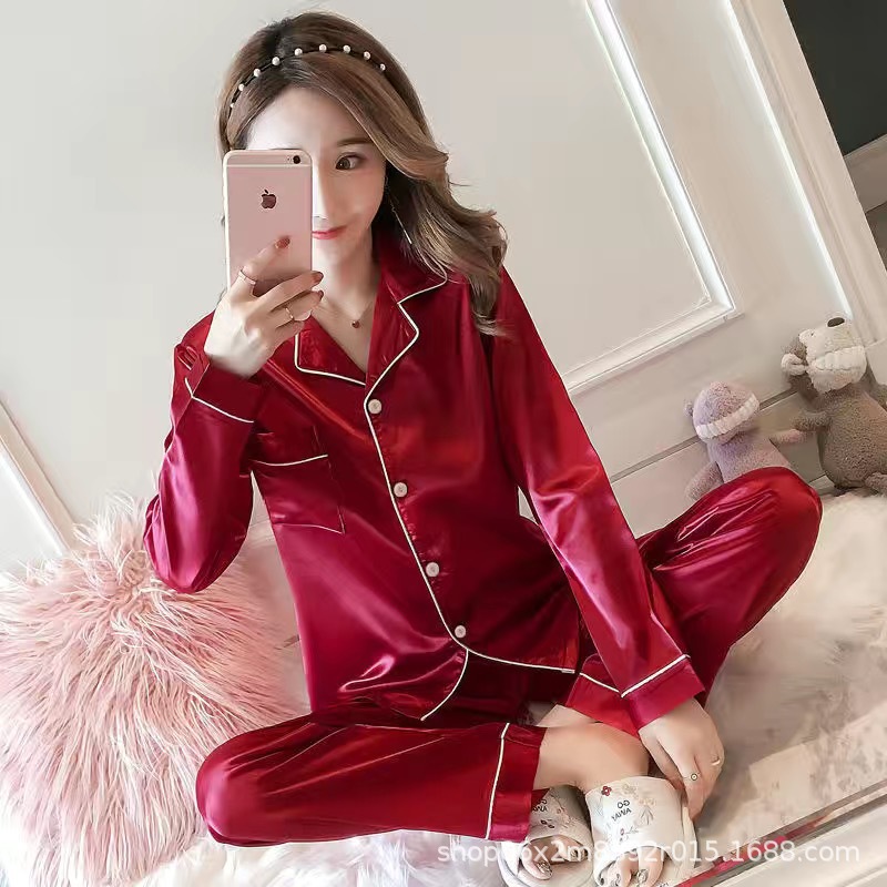 잠옷 여자의 봄과 가을 얼음 실크 긴 소매 한국식 투피스 세트 복장 섹시한 봄과 여름 플러스 뚱뚱한 가정 옷스토어 가기