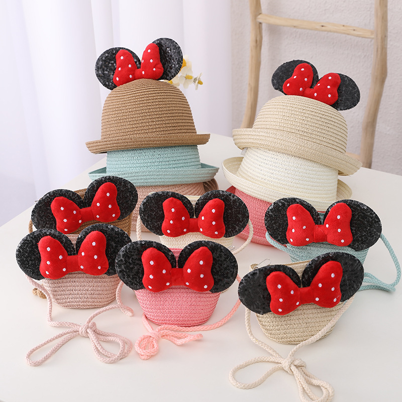 여름 새로운 어린이 밀짚 모자 자외선 차단제 태양 모자 나비 소녀 여행 해변 멋진 모자 공주 모자 아기 세트
