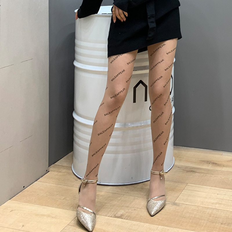 夏季新款英文印花任意剪连裤袜女士JK丝袜 B字母巴黎潮牌8D黑丝袜