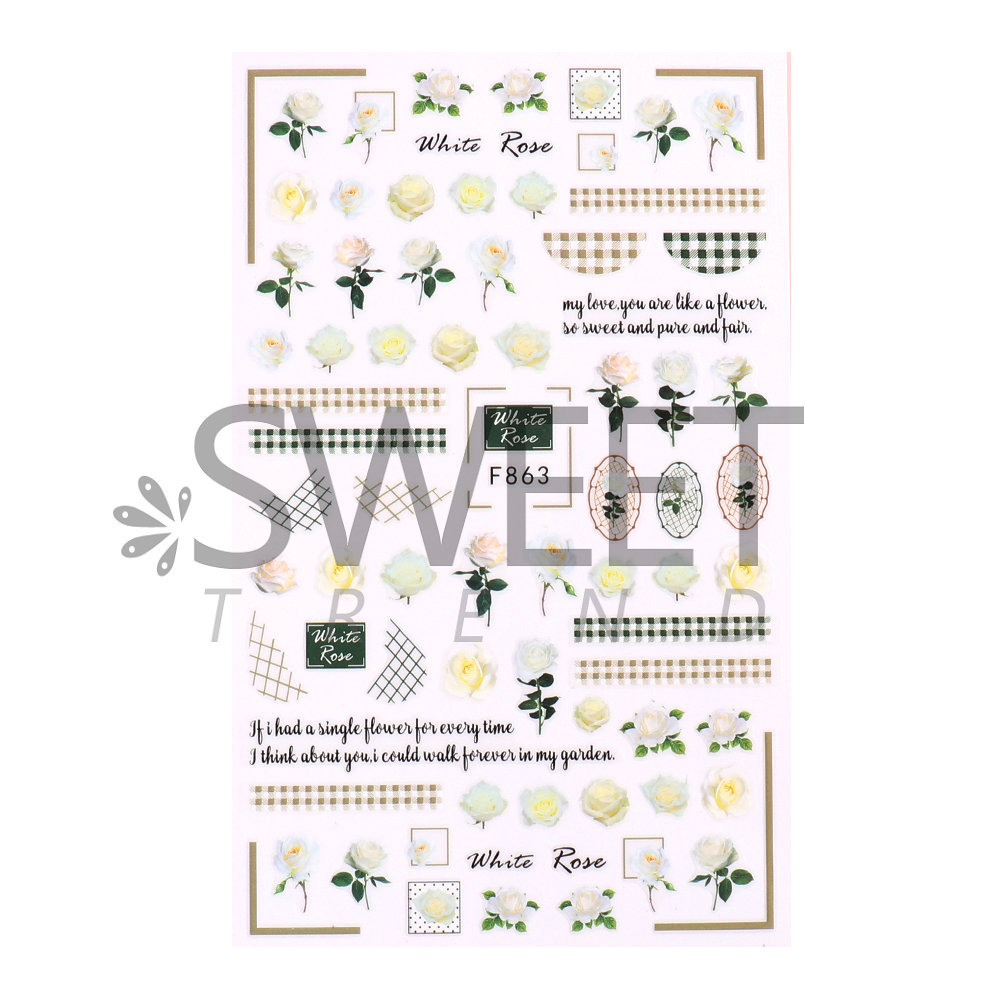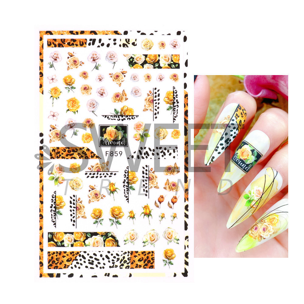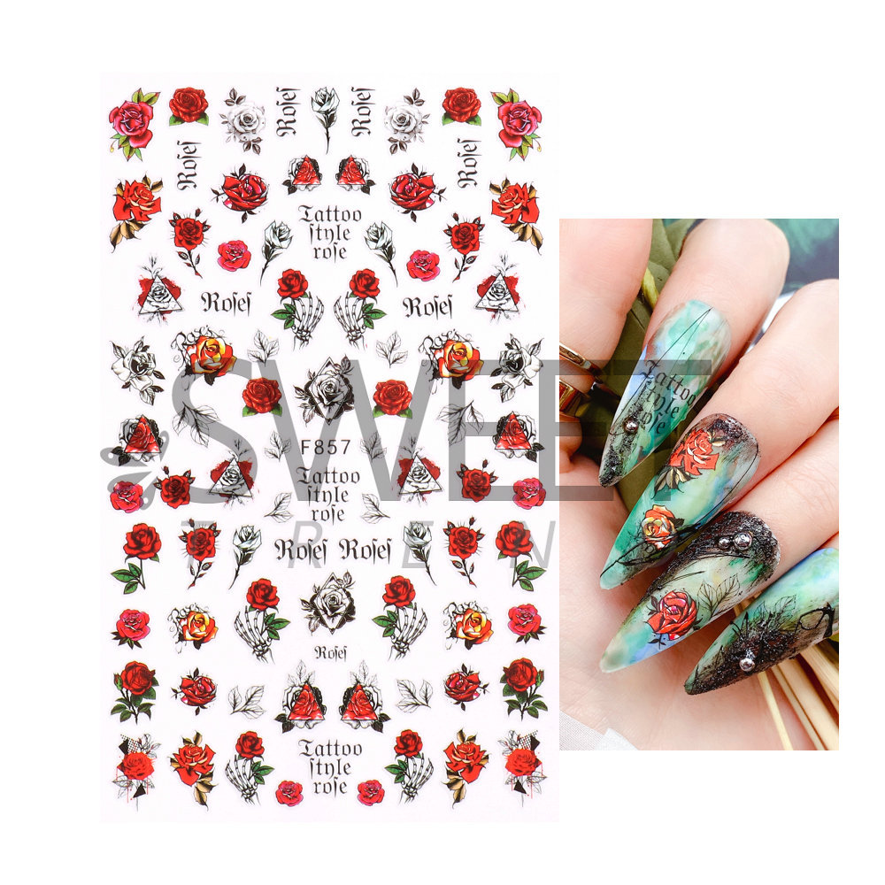 2022 새로운 네일 스티커 F 시리즈 네일 3D 스티커 자체 접착 스프링 로즈 잔디 네일 스티커