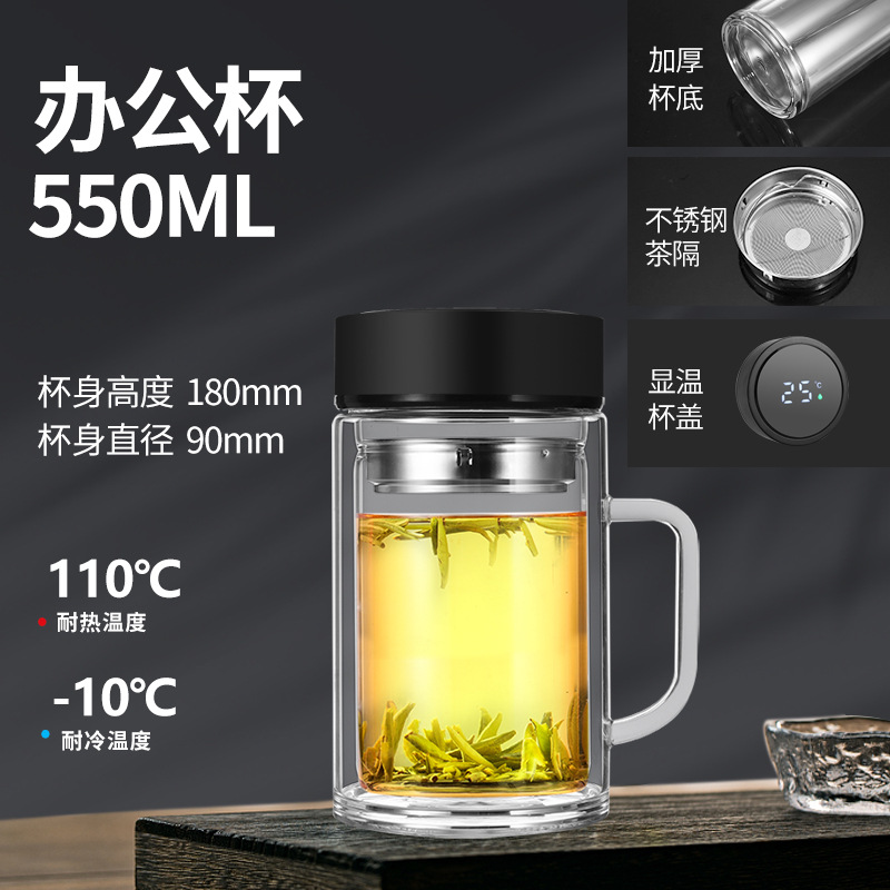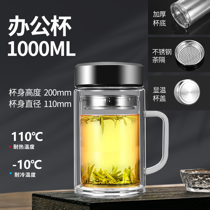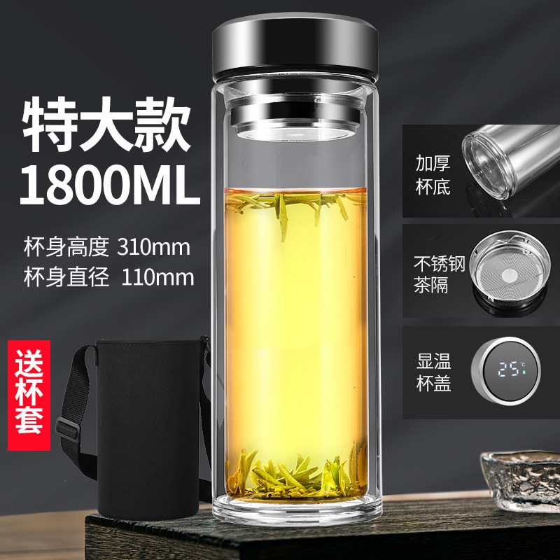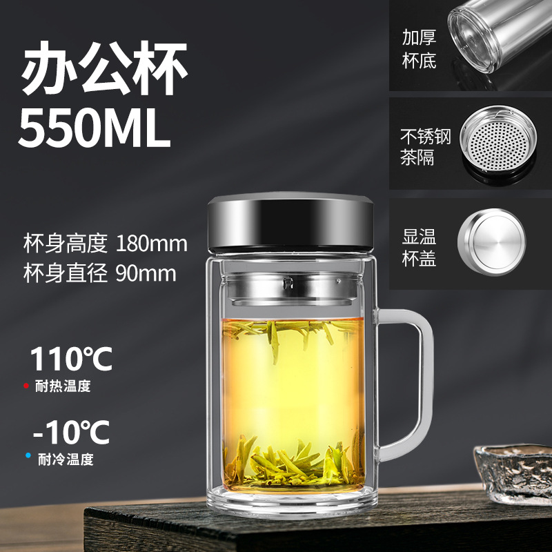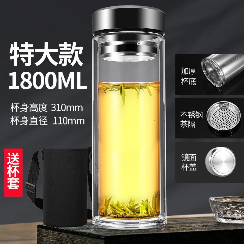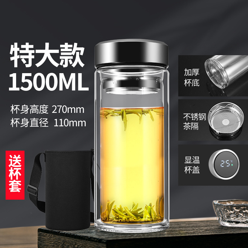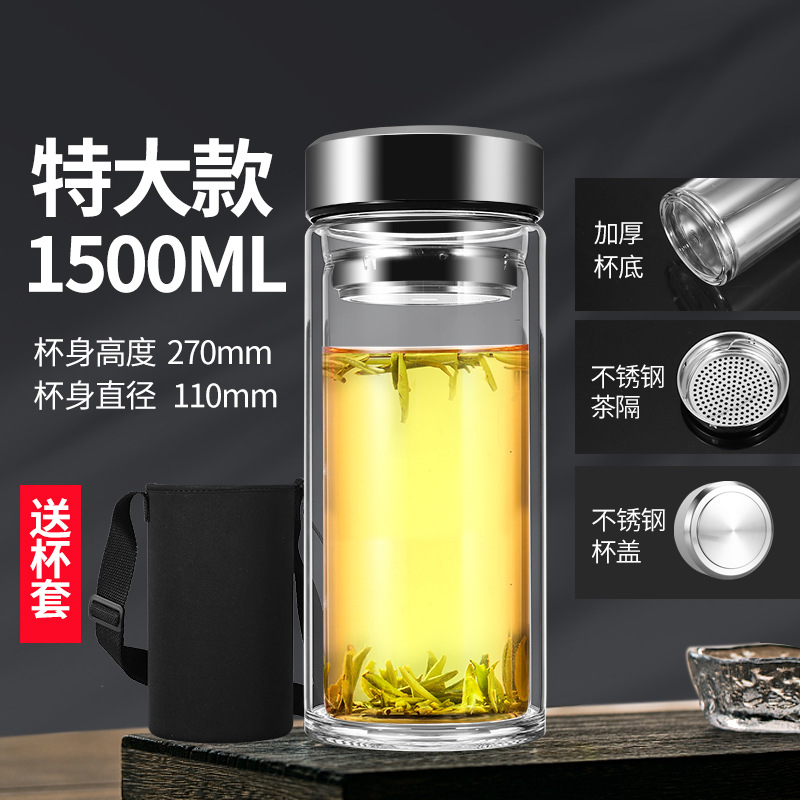 남성과 여성을 위한 새로운 2 중 유리 대용량 휴대용 물컵 비즈니스 사무실 찻잔 두꺼운 투명 컵