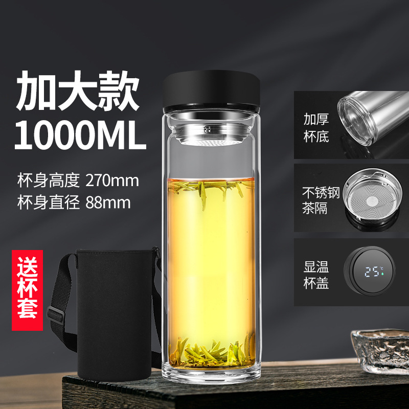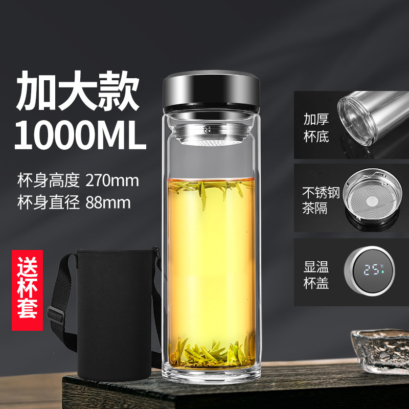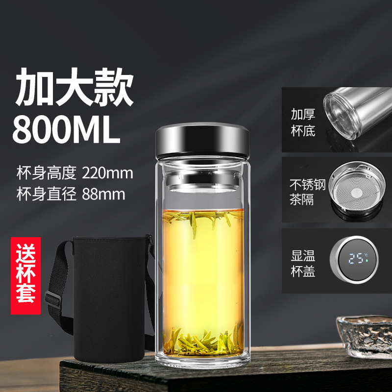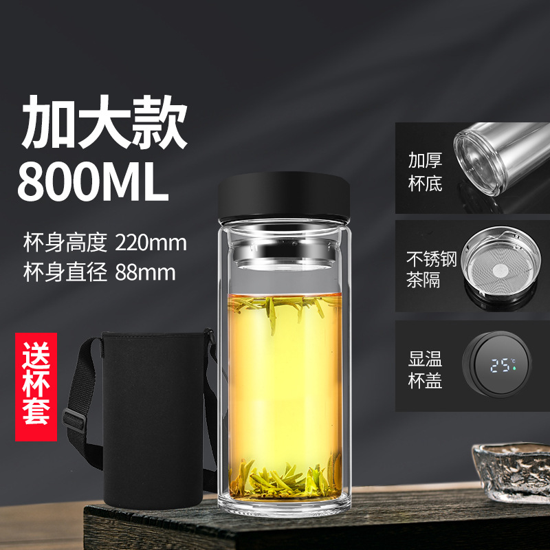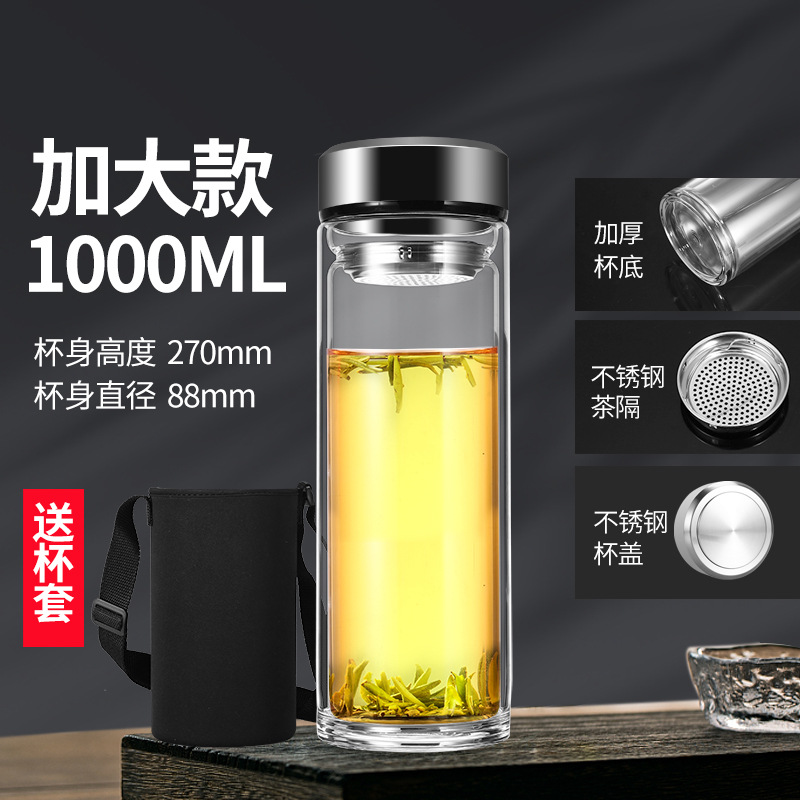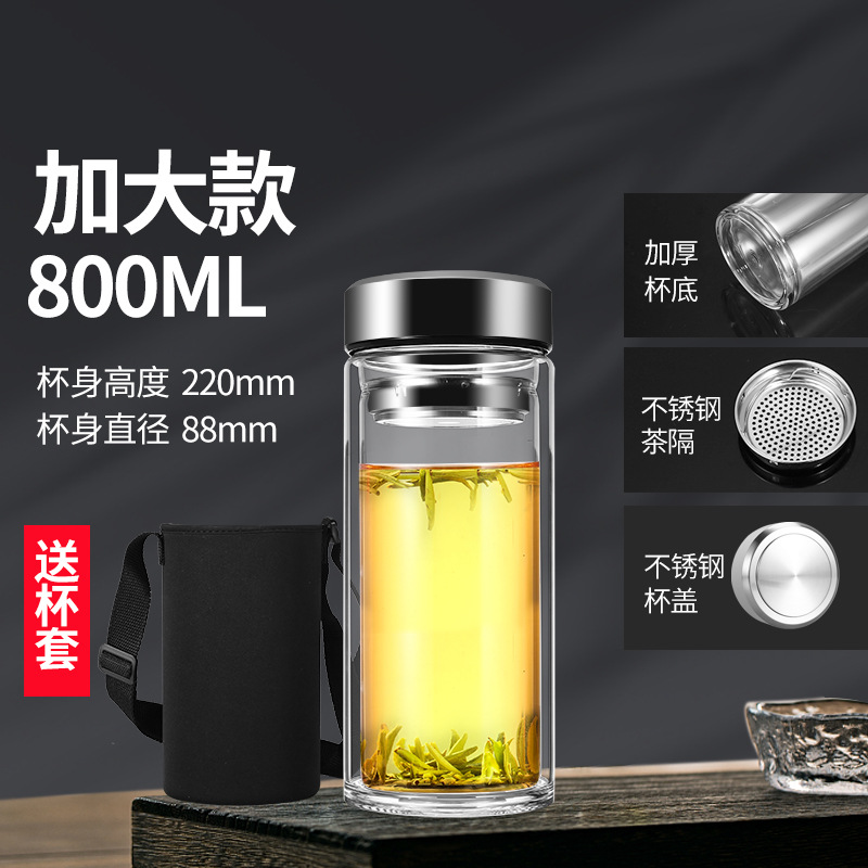 남성과 여성을 위한 새로운 2 중 유리 대용량 휴대용 물컵 비즈니스 사무실 찻잔 두꺼운 투명 컵스토어 가기
