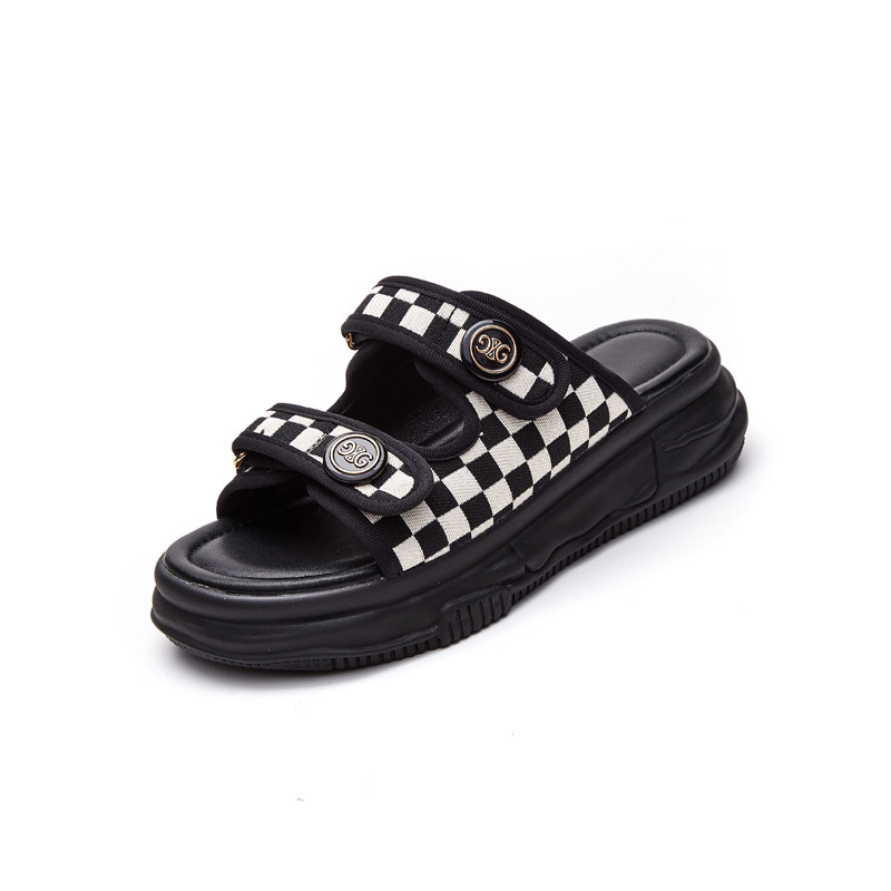 2023 여름 새로운 해변 두꺼운 바닥 토레 격자 무늬 캐주얼 여성 신발 샤넬 스타일 여성용 두꺼운 바닥 스포츠 샌들