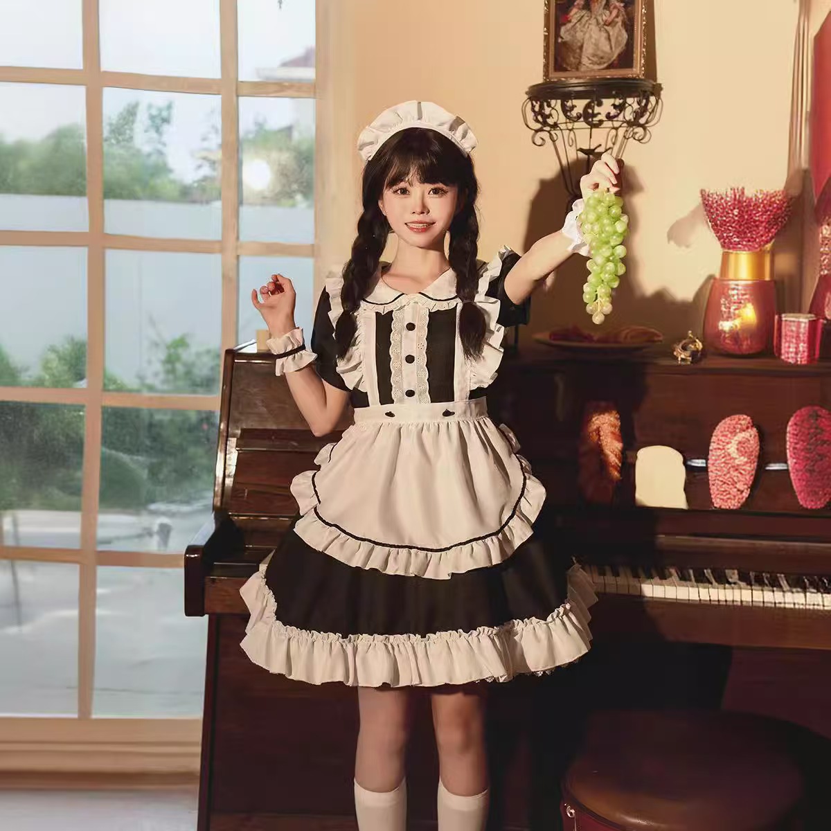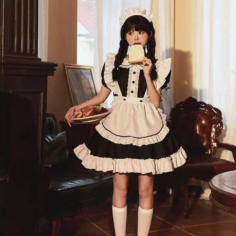 귀여운 부드러운 소녀 일본 로리타 메이드 세트 매일 겉옷 우유 스트랩 메이드 세트 애니메이션 의상 무대 성능