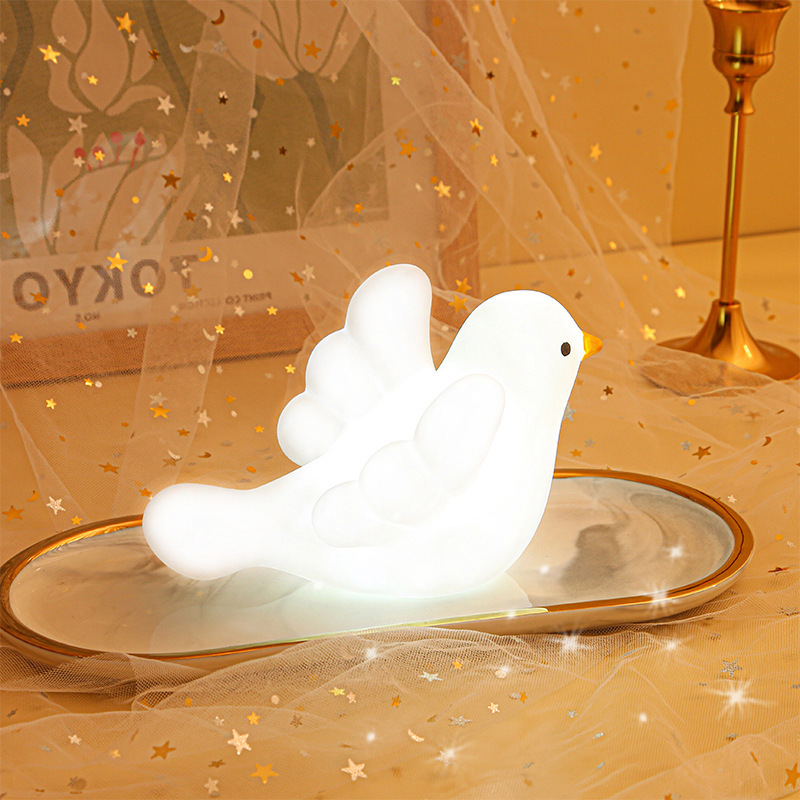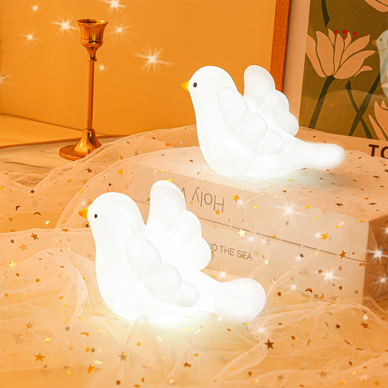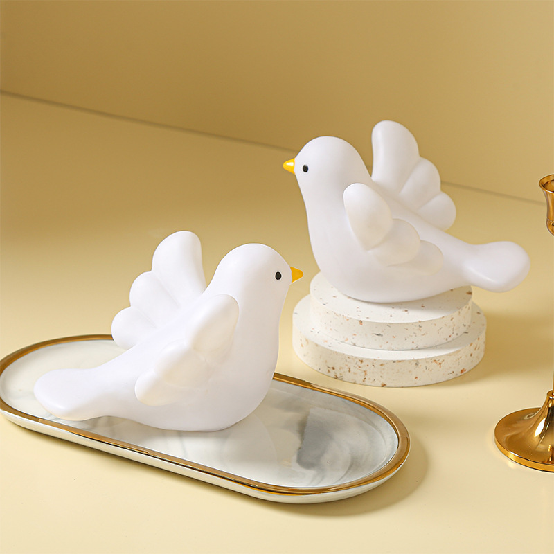 仿真和平鸽摆件搪胶工艺品小夜灯模型卧室书房床头桌面装饰摆设品