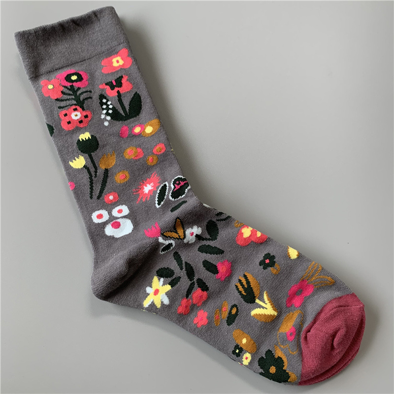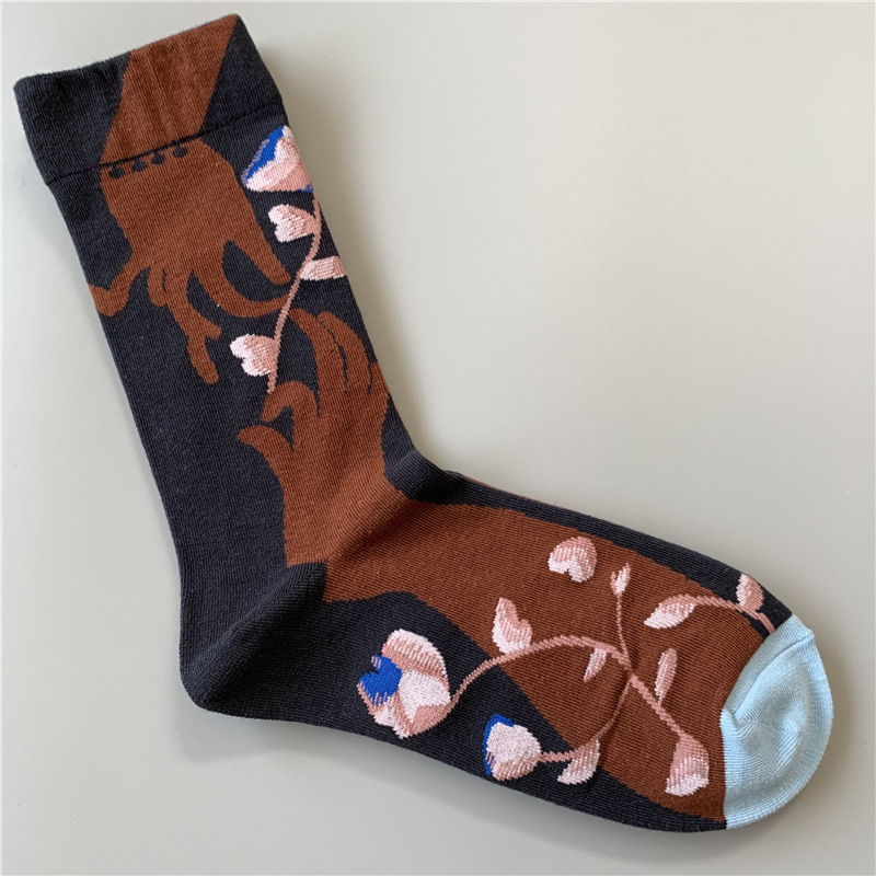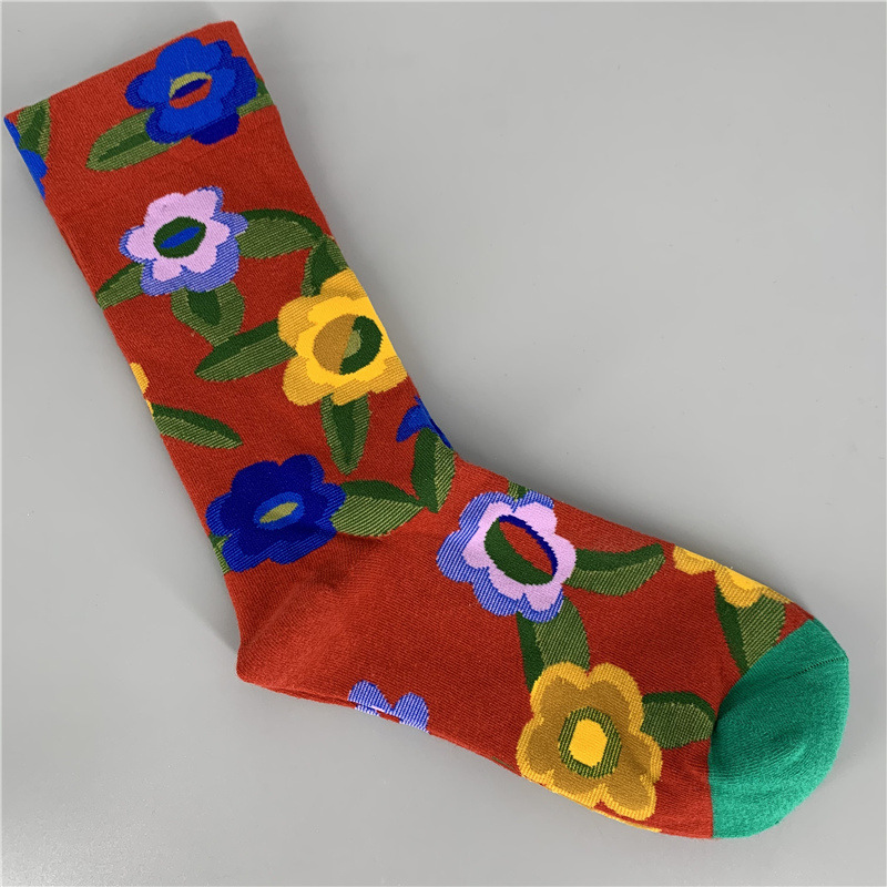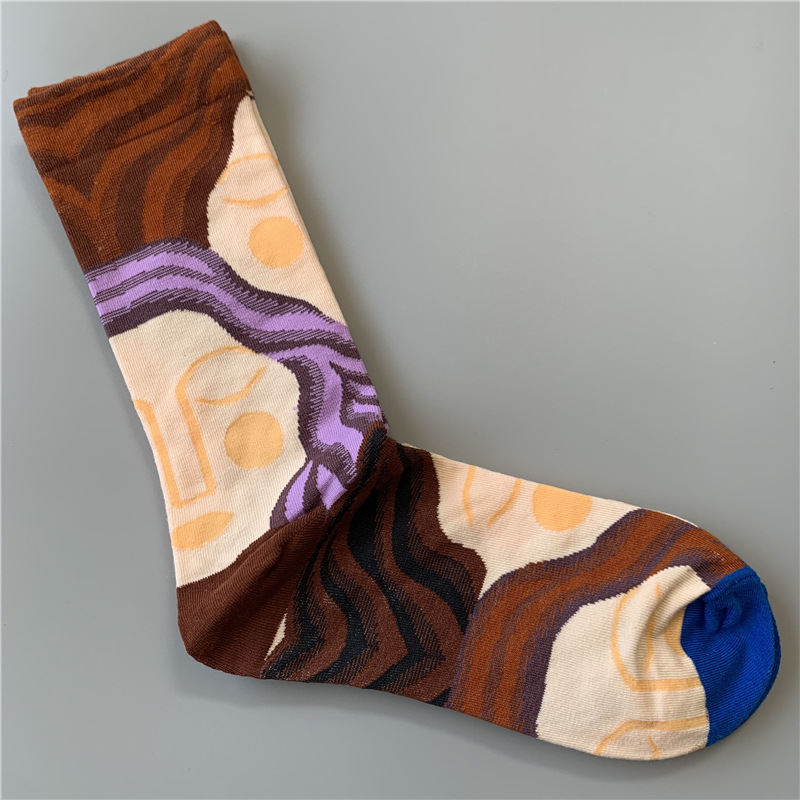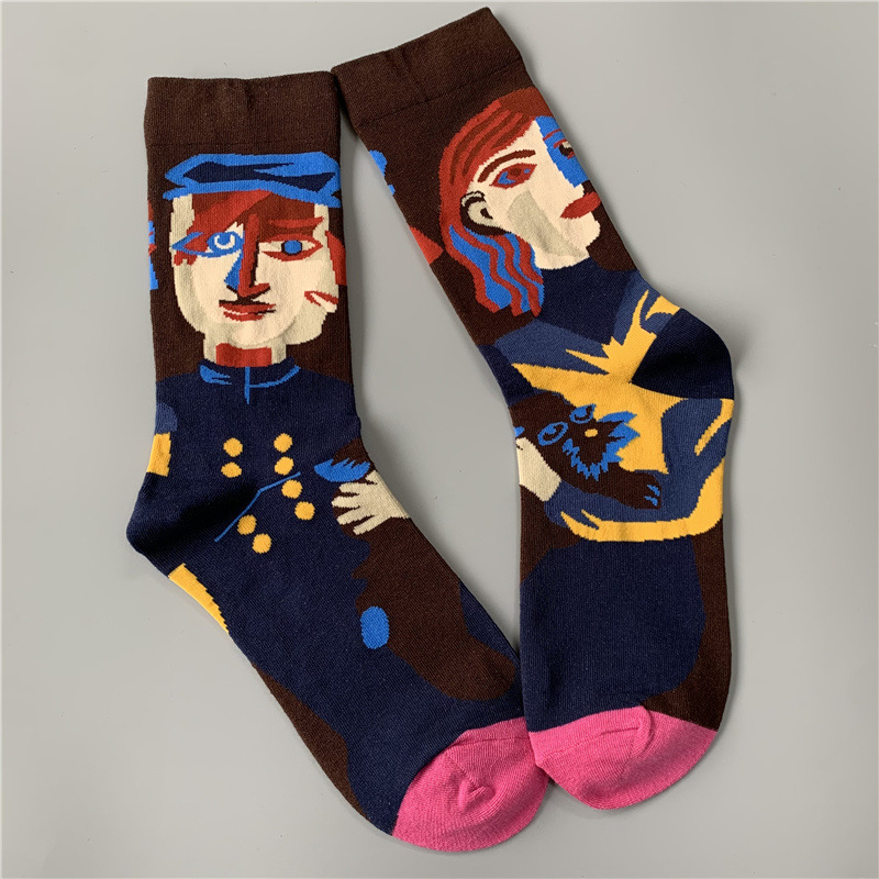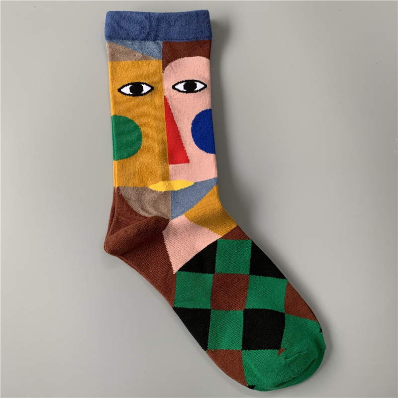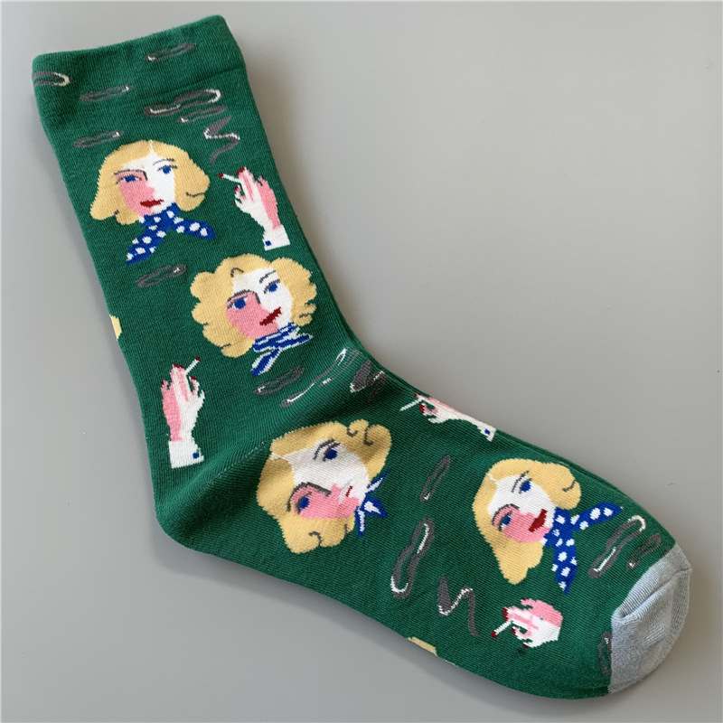 새로운 프랑스 조수 재미있는 유화 양말 스타일 예술적 색상 해피 중간 높은 배럴 틈새 여성 조수 송아지 면스토어 가기