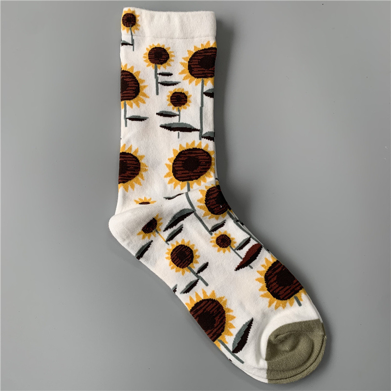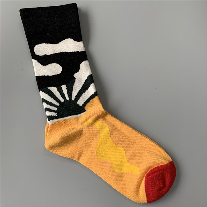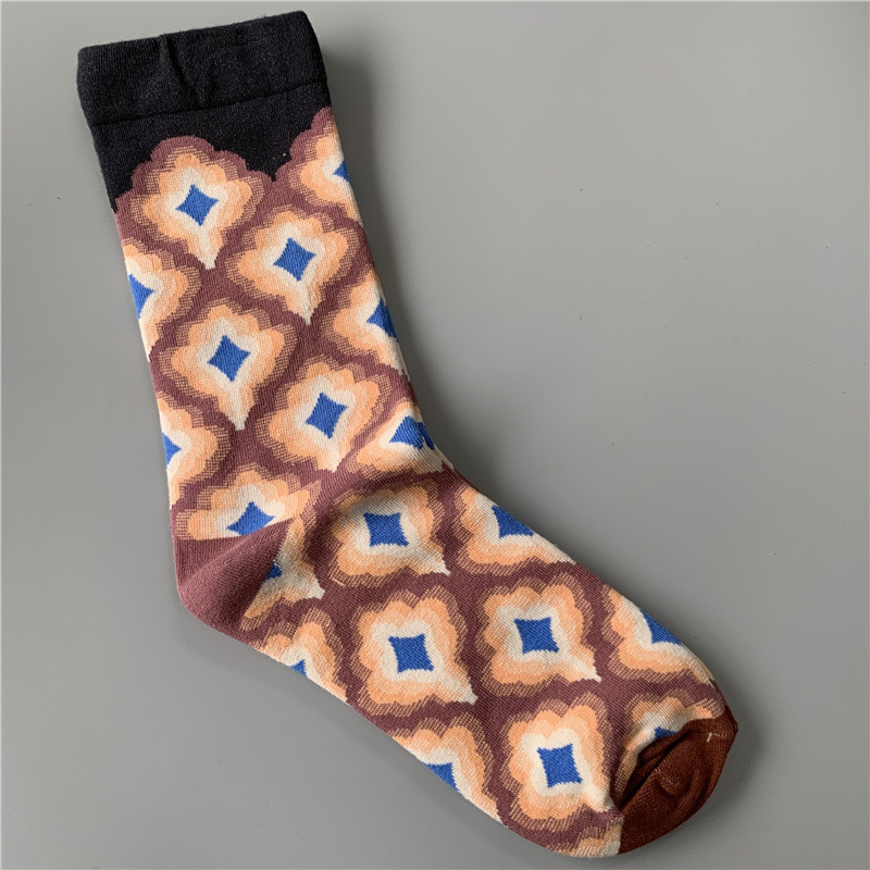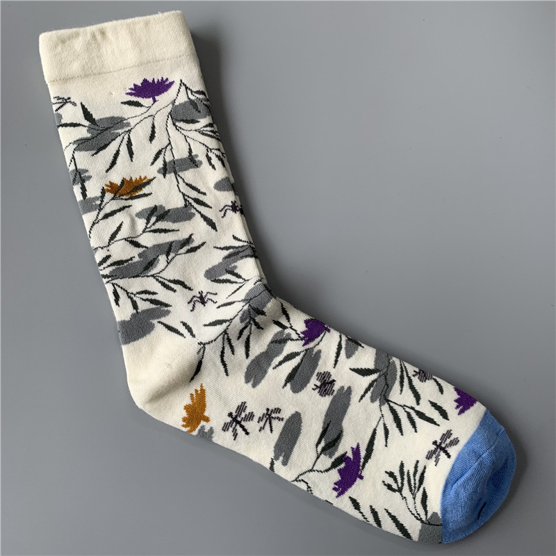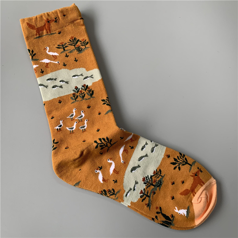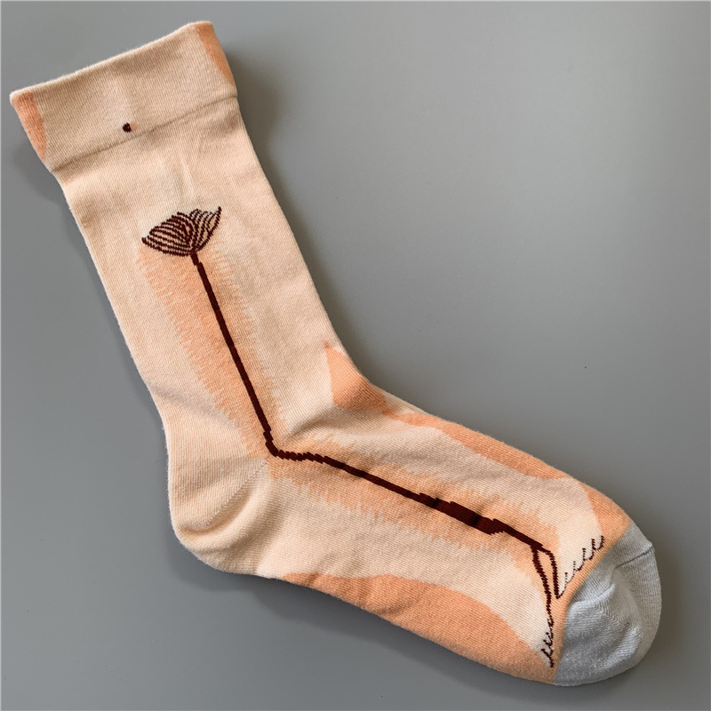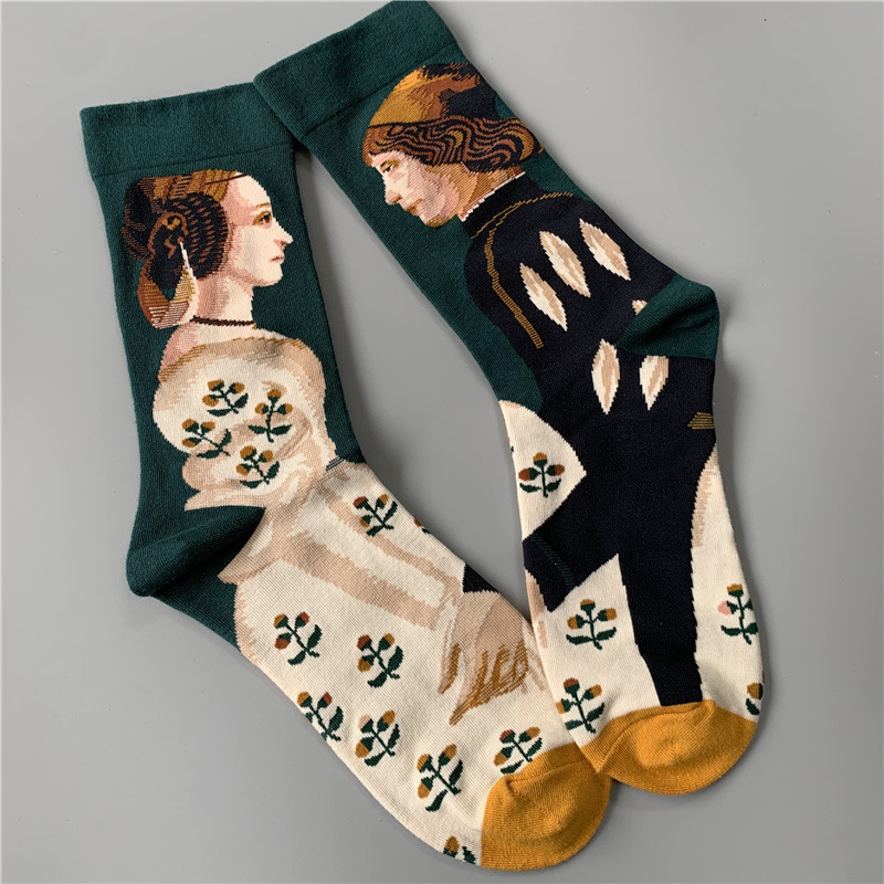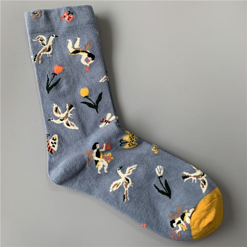새로운 프랑스 조수 재미있는 유화 양말 스타일 예술적 색상 해피 중간 높은 배럴 틈새 여성 조수 송아지 면스토어 가기