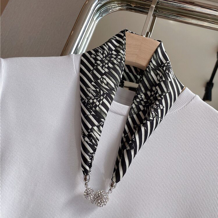 봄 2024 새로운 자기 버클 다기능 여성의 작은 스카프 유행 레트로 뽕나무 실크 선 스크린 스카프 헤어 밴드