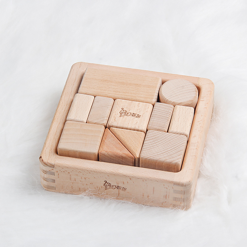 宝宝玩具 大块实木大颗粒原木色拼装模型 儿童可啃咬木头城堡积木