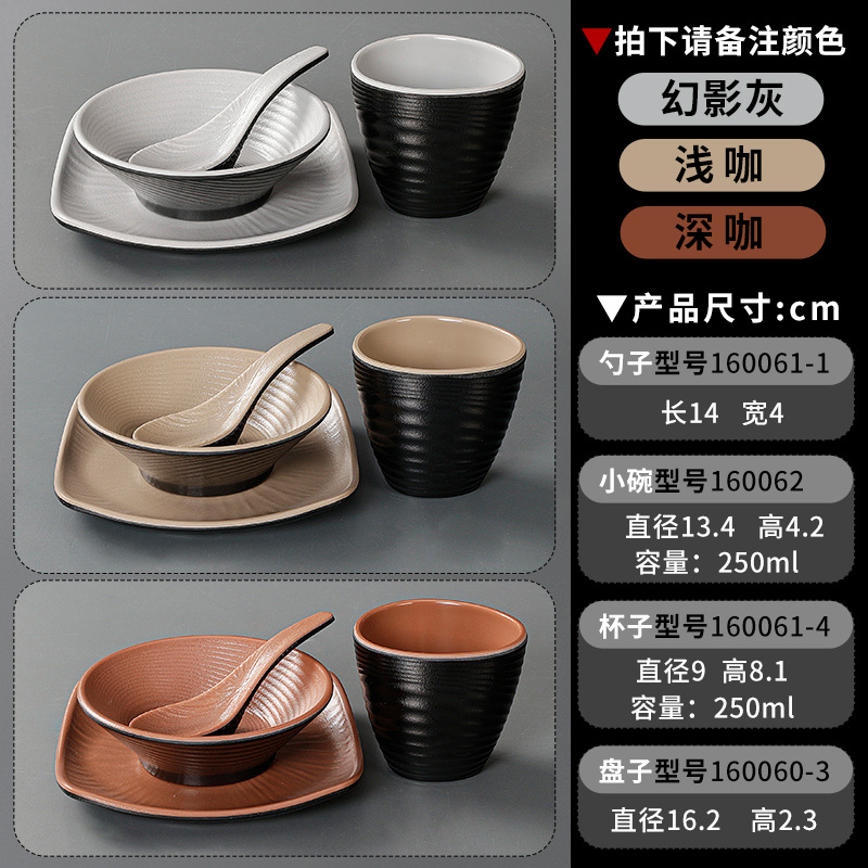 멜라민 호텔 레스토랑 테이블 식기 도매 모조 도자기 작은 그릇 레스토랑 냄비 레스토랑 4 조각 세트 그릇 접시 세트 상업스토어 가기