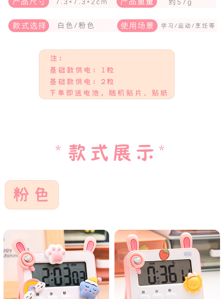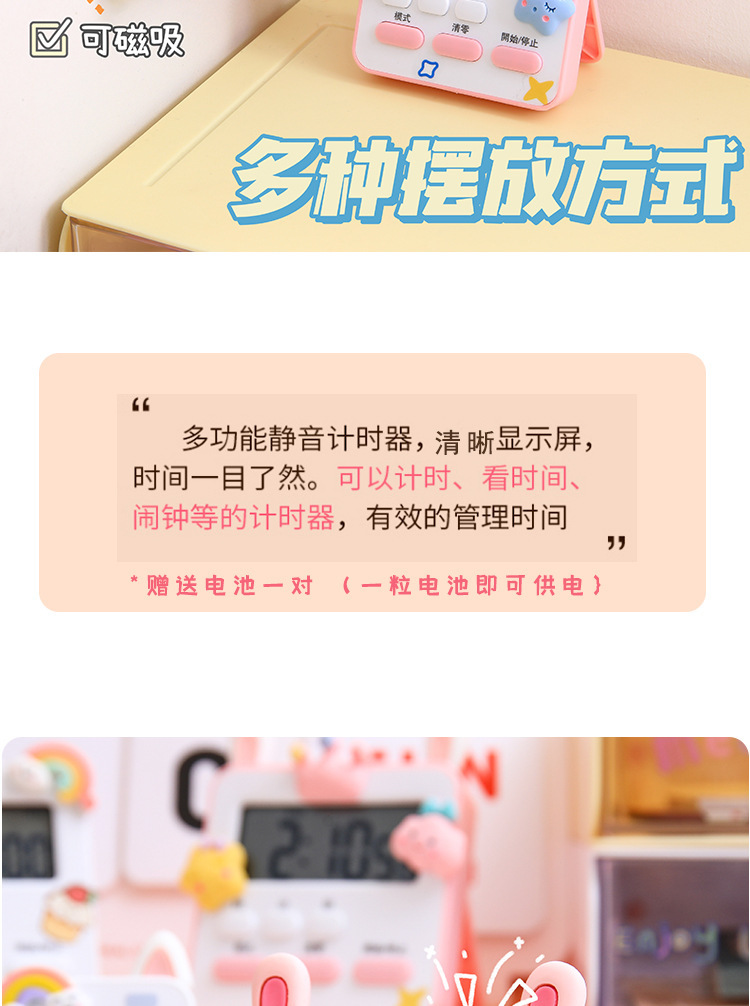 • 핑크 알람 시계 (플래시 6 패치 스티커 배터리)