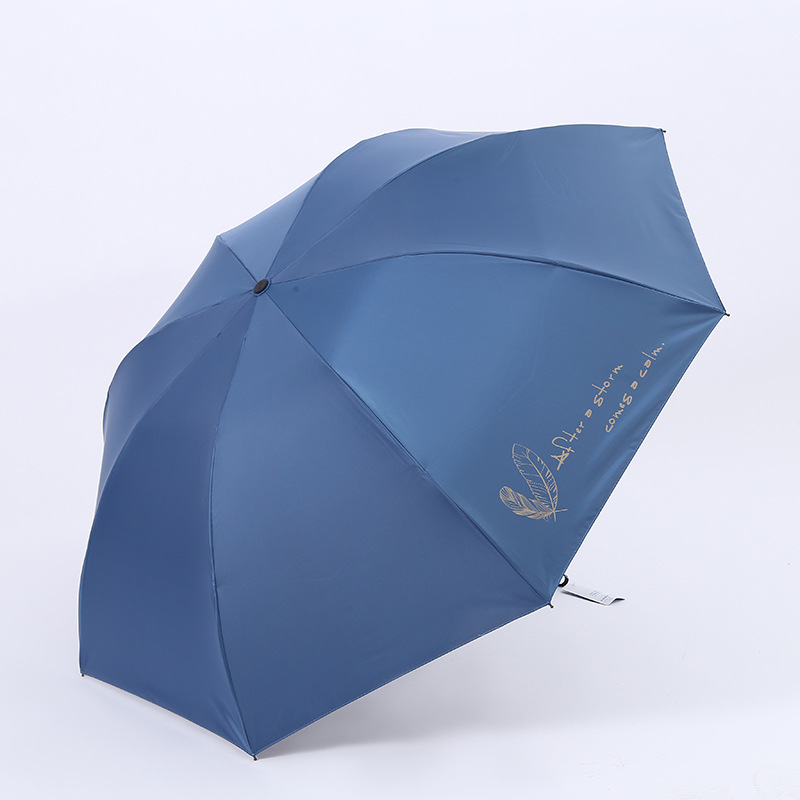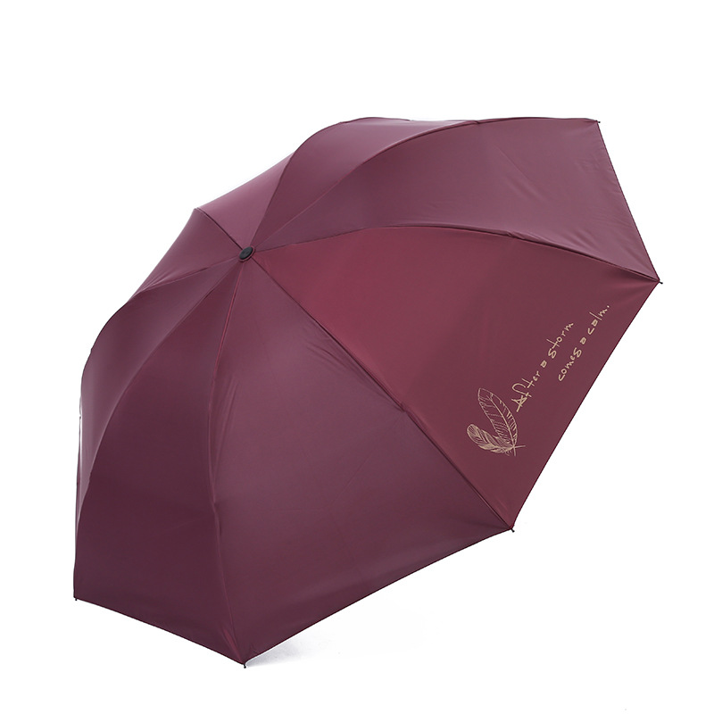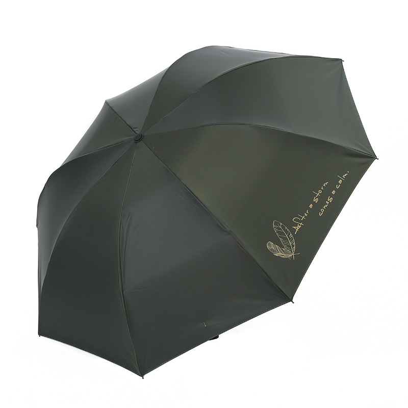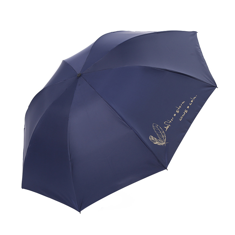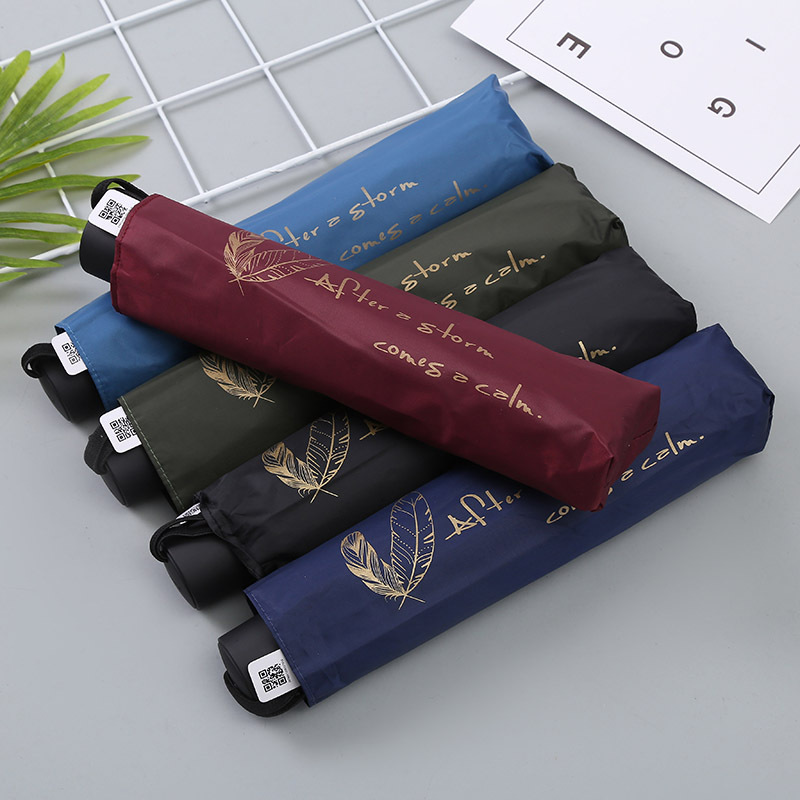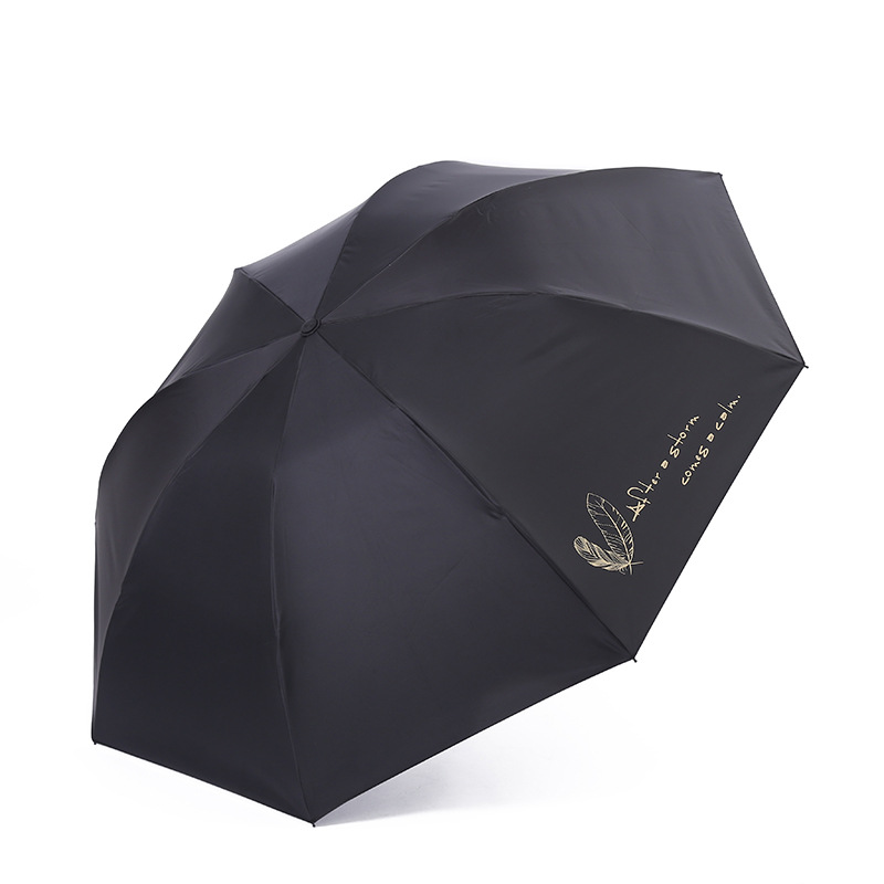 파라다이스 우산 깃털 인쇄 접는 우산 강화 두 가지 사용 안티 자외선 블랙 고무 써니 우산 로고 비즈니스 우산