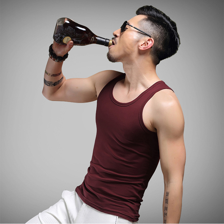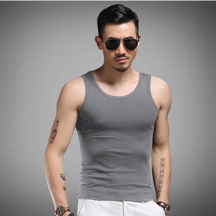 남자의 조끼 탄성 라운드 넥 와이드 숄더 겉옷 단색 스포츠 조끼 청소년 피트니스 민소매 베이스 셔츠 탑 트렌디스토어 가기
