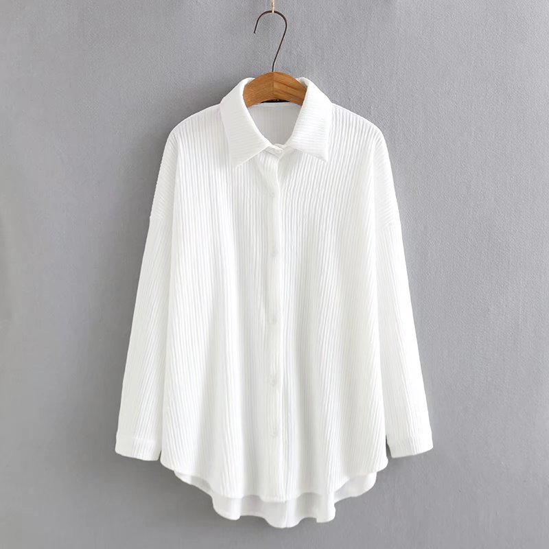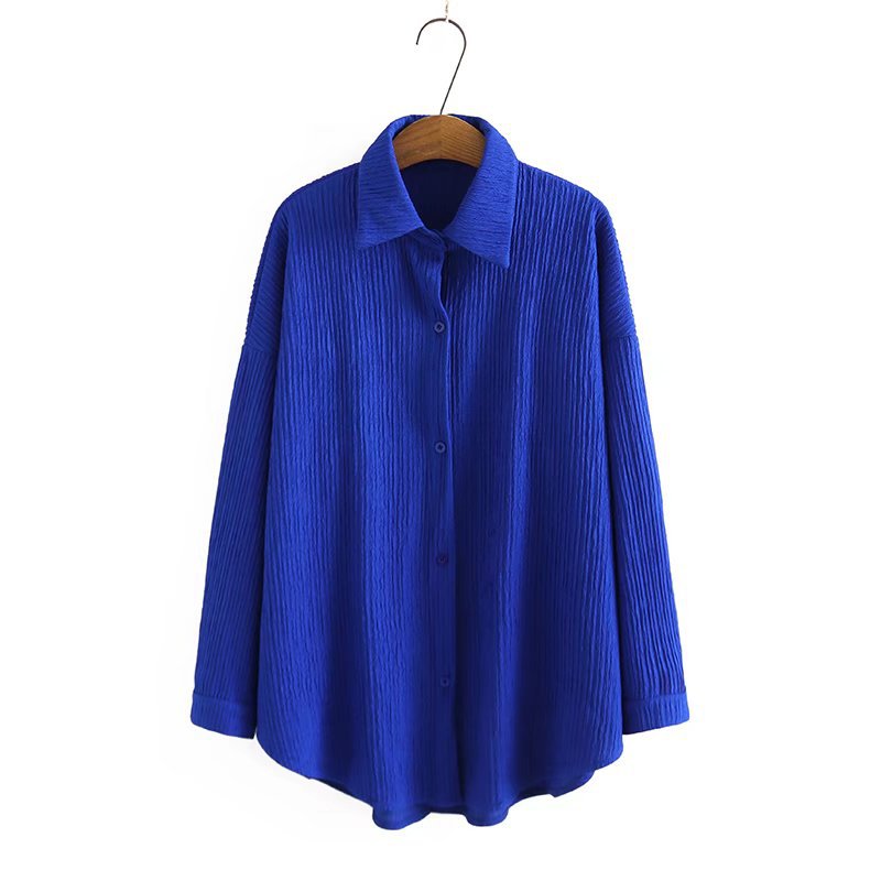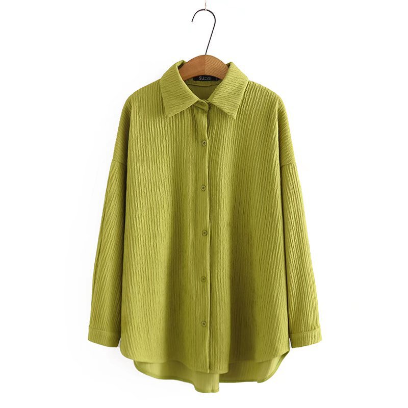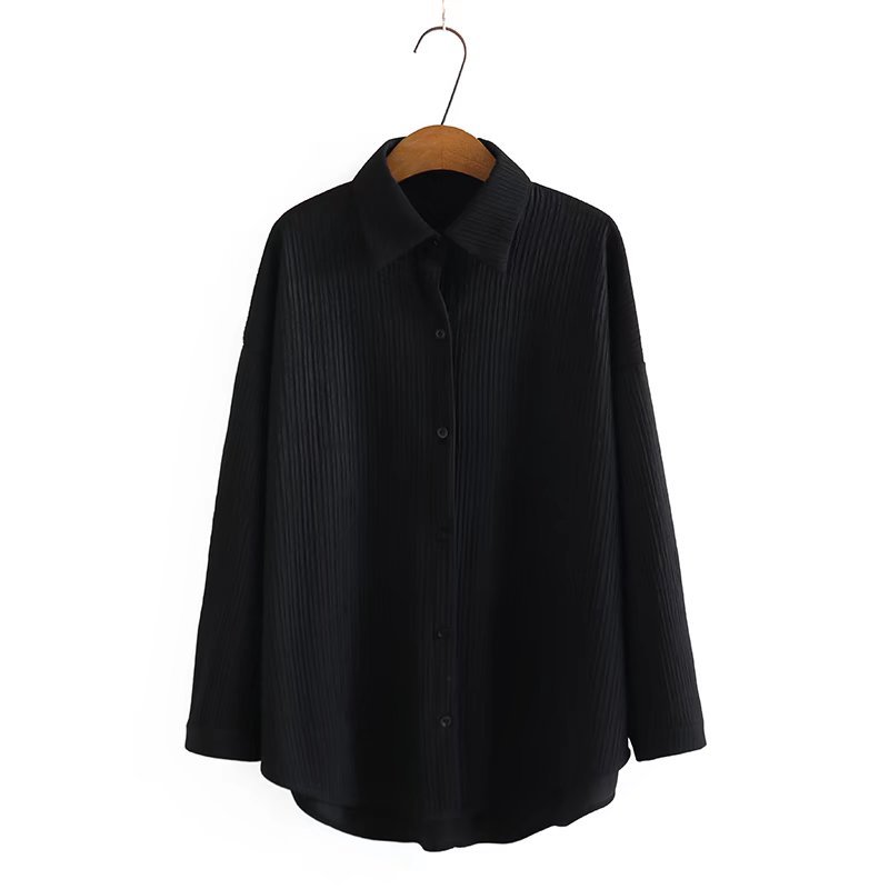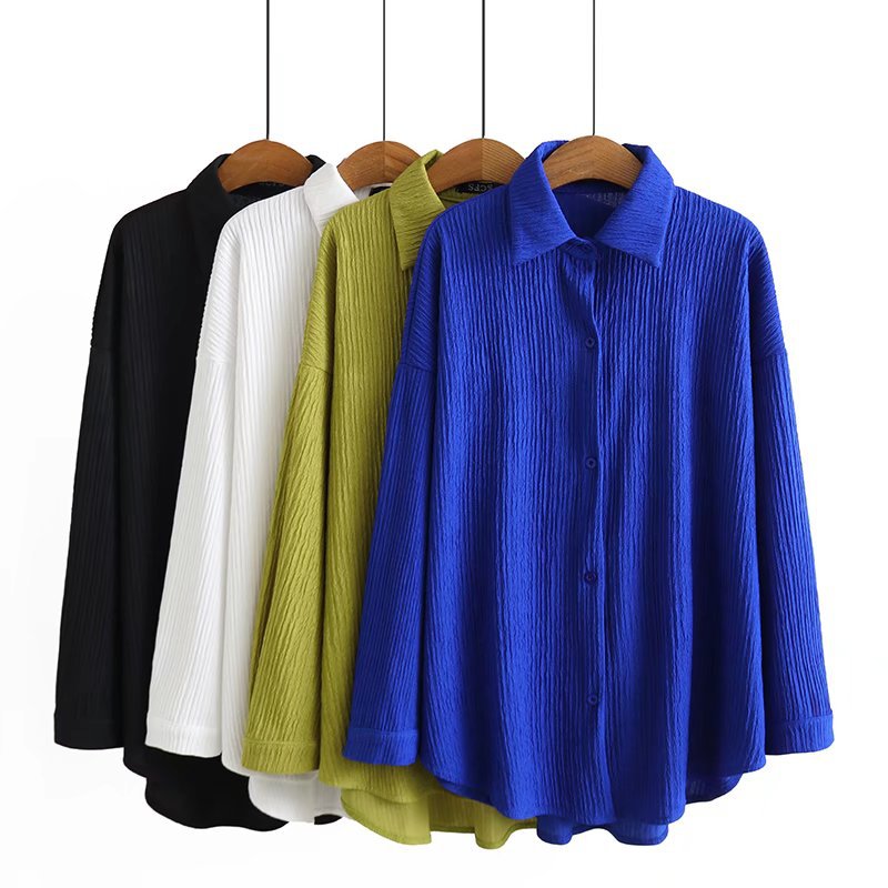 Fat MM 플러스 사이즈 2025 봄 신작 한국 패션 캐주얼 여성 주름 천 솔리드 컬러 긴팔 셔츠 z47 83