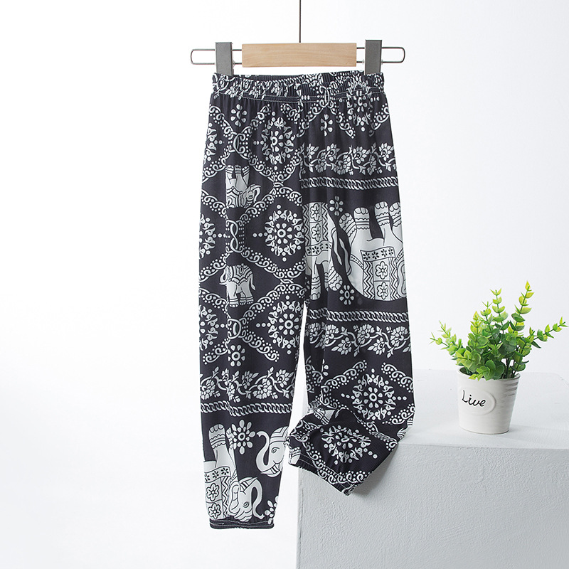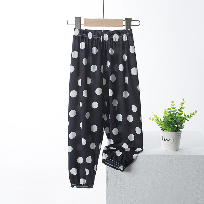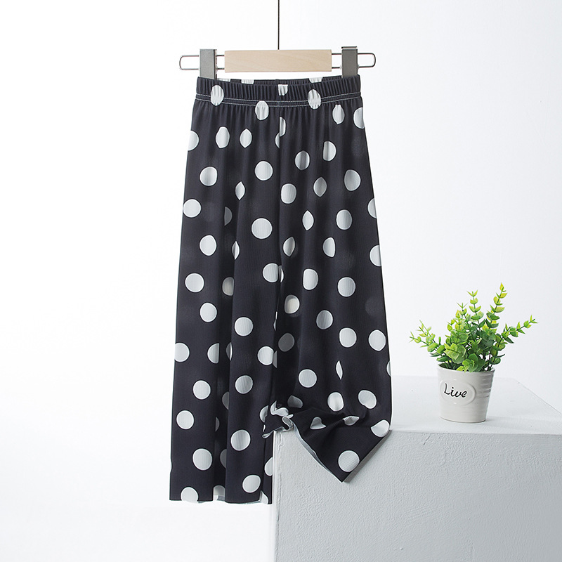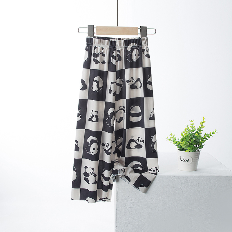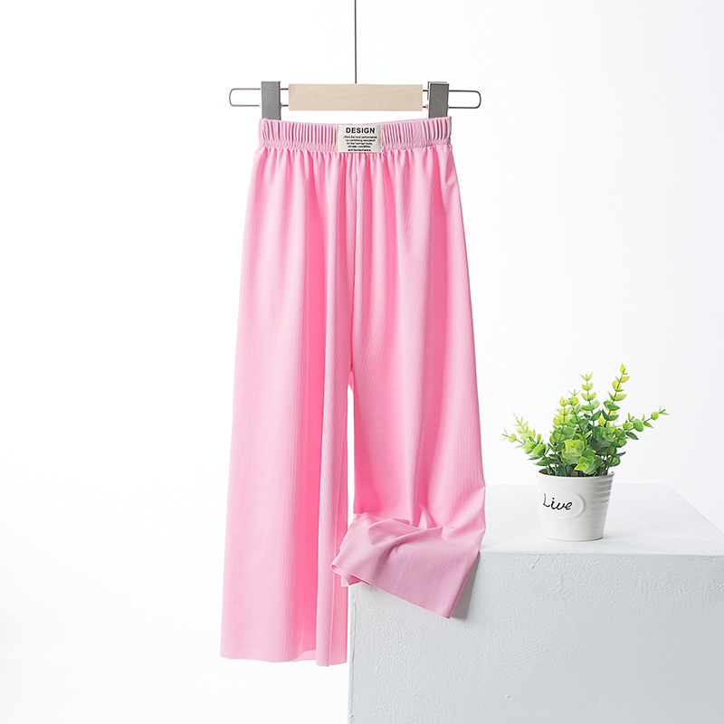 여아 아이스 실크 와이드 팬츠 여름 얇은 큰 어린이 서양 스타일 느슨한 바지 여아 여름 어머니와 여성의 모기 방지 자르기 바지스토어 가기