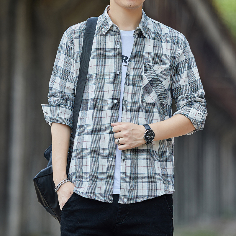 2024 봄과 가을 새로운 남성 긴팔 체크 무늬 셔츠 캐주얼 느슨한면 인치 트렌디 한 외부 풀오버 셔츠 남성복스토어 가기