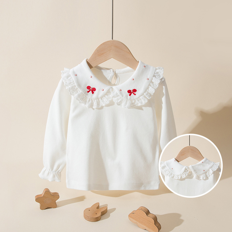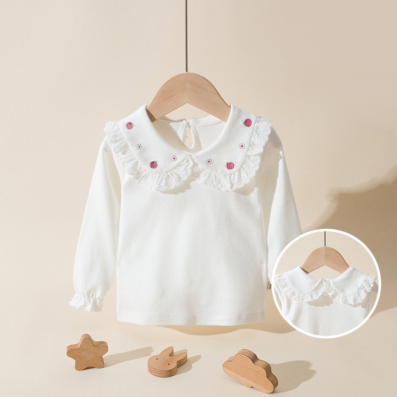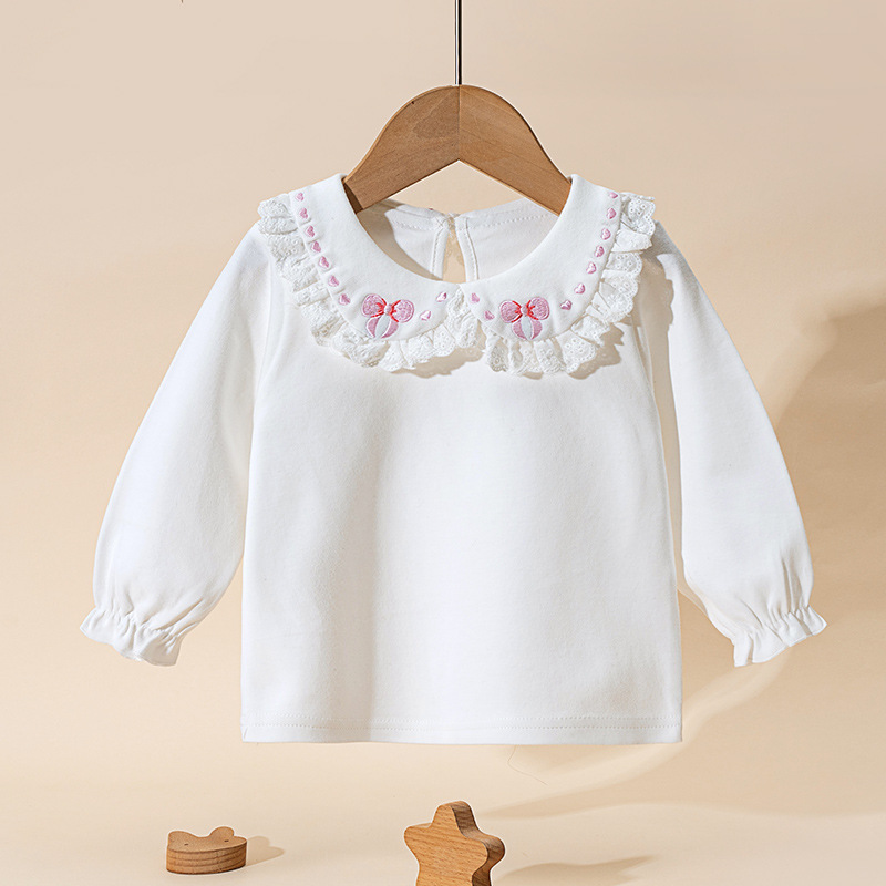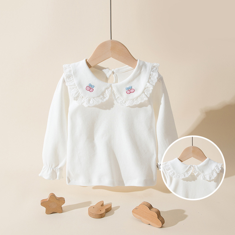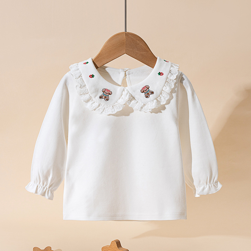 어린이 봄과 가을 기본 셔츠 아기 소녀의 봄 순면 옷깃 옷 아기 소녀의 인형 칼라 티셔츠 화이트 탑