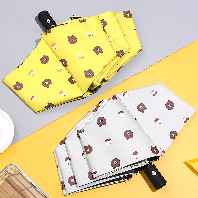 • 新款小熊伞黑胶防晒遮阳三折全自动晴雨伞 布朗熊雨伞太阳伞定制