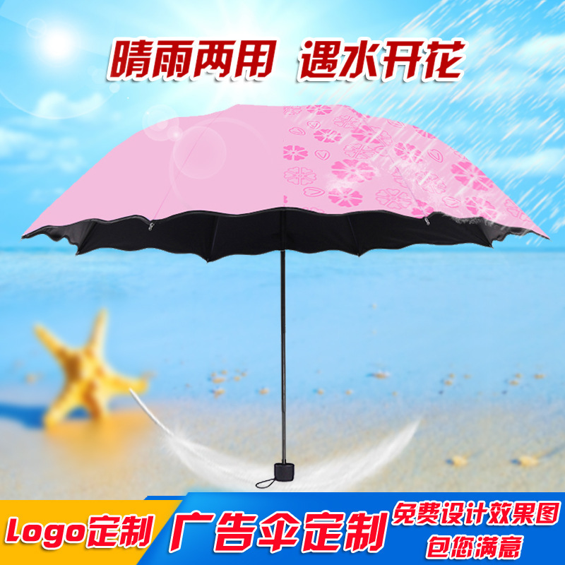 • 定广告伞logo女士纯色黑胶防晒太阳伞折叠厂家批发遇水开花晴雨伞