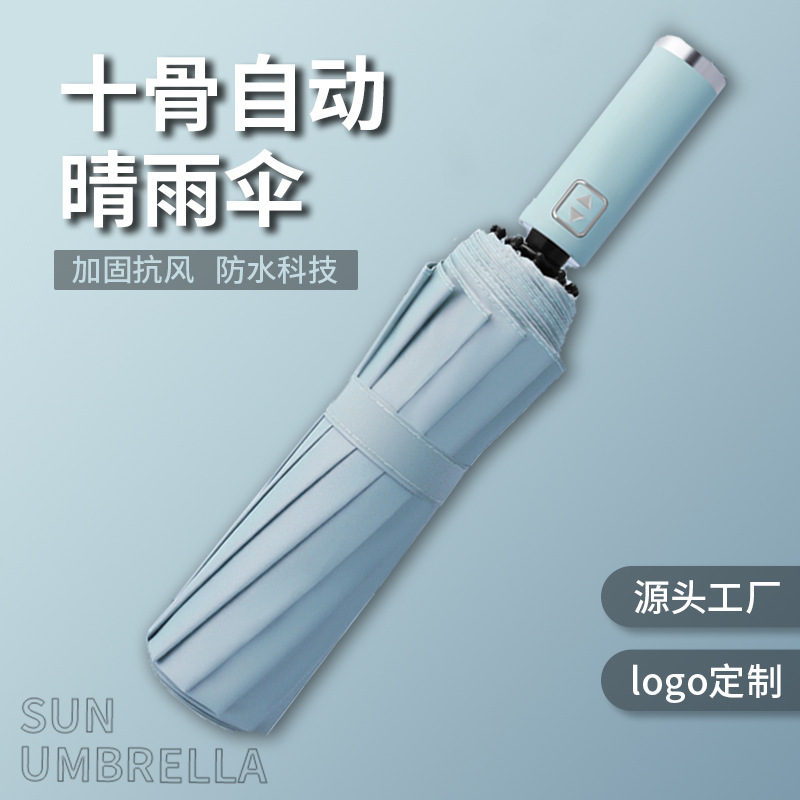 • 十骨全自动大号商务广告伞晴雨伞黑胶防嗮三折叠伞礼品太阳伞批发