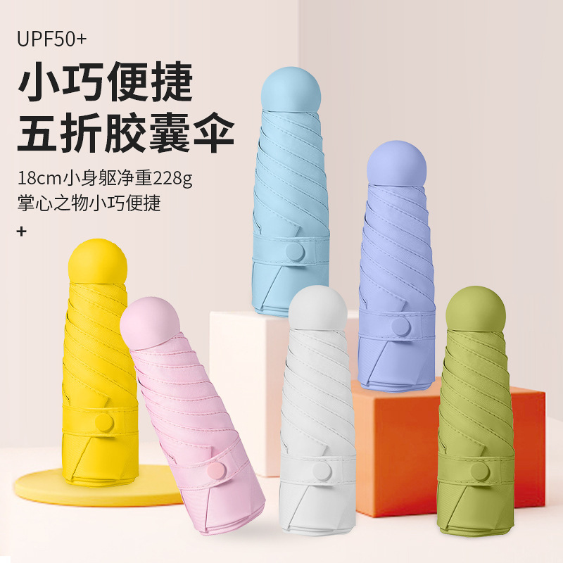 • 五折迷你太阳伞小巧便携遮阳伞防晒防紫外线雨伞女晴雨两用口袋伞
