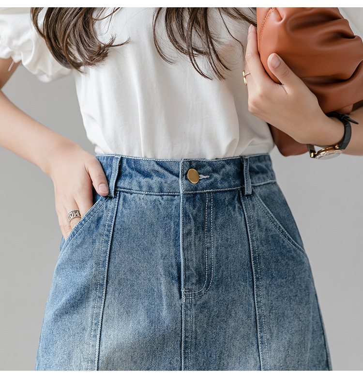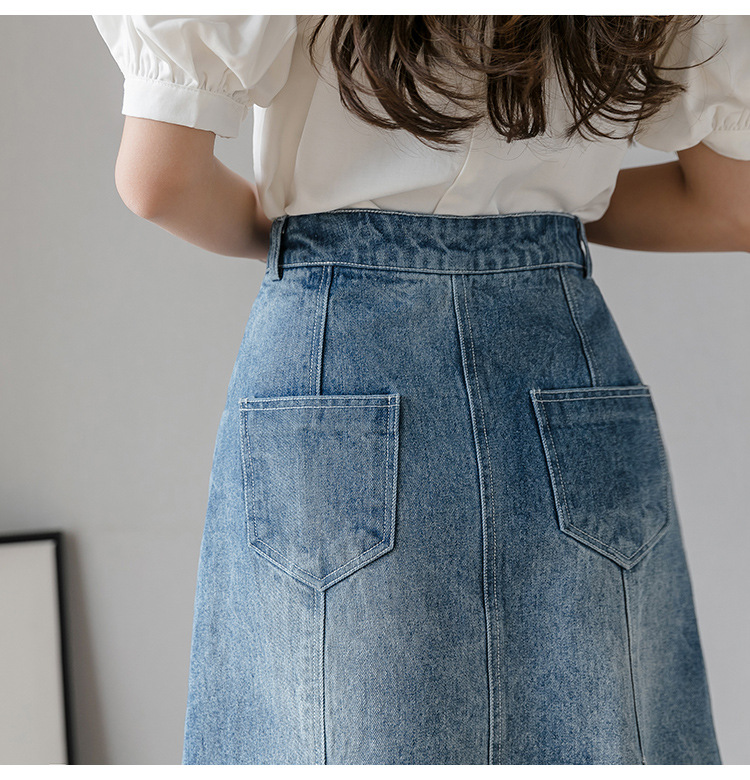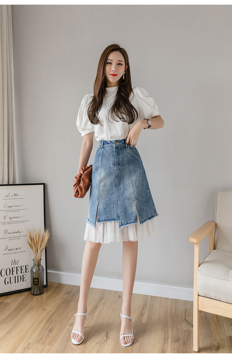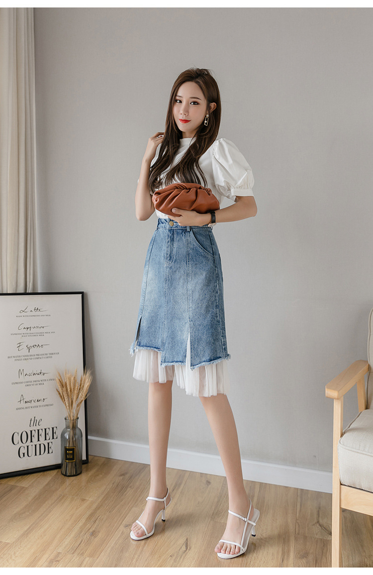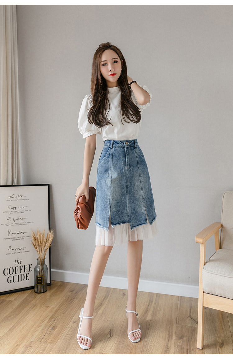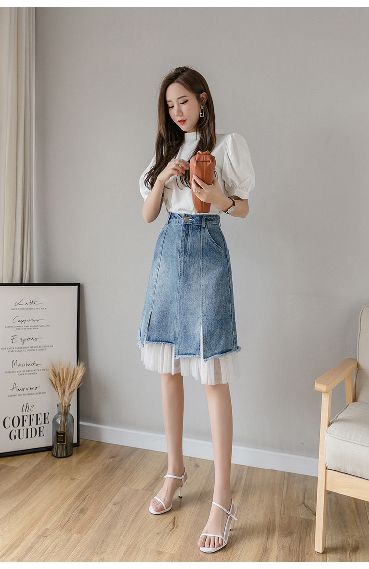실제 사진, 2025년 봄/여름 신상 트렌디하고 다재다능한 데님과 메쉬 소재의 여성용 힙허깅 롱 스커트스토어 가기