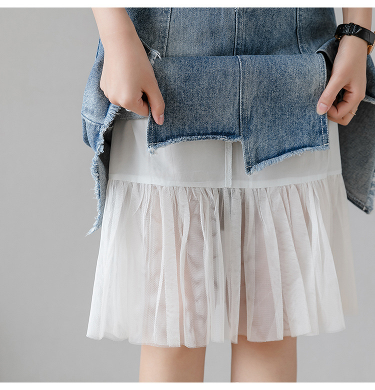 실제 사진, 2025년 봄/여름 신상 트렌디하고 다재다능한 데님과 메쉬 소재의 여성용 힙허깅 롱 스커트