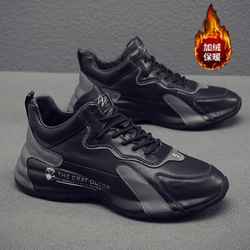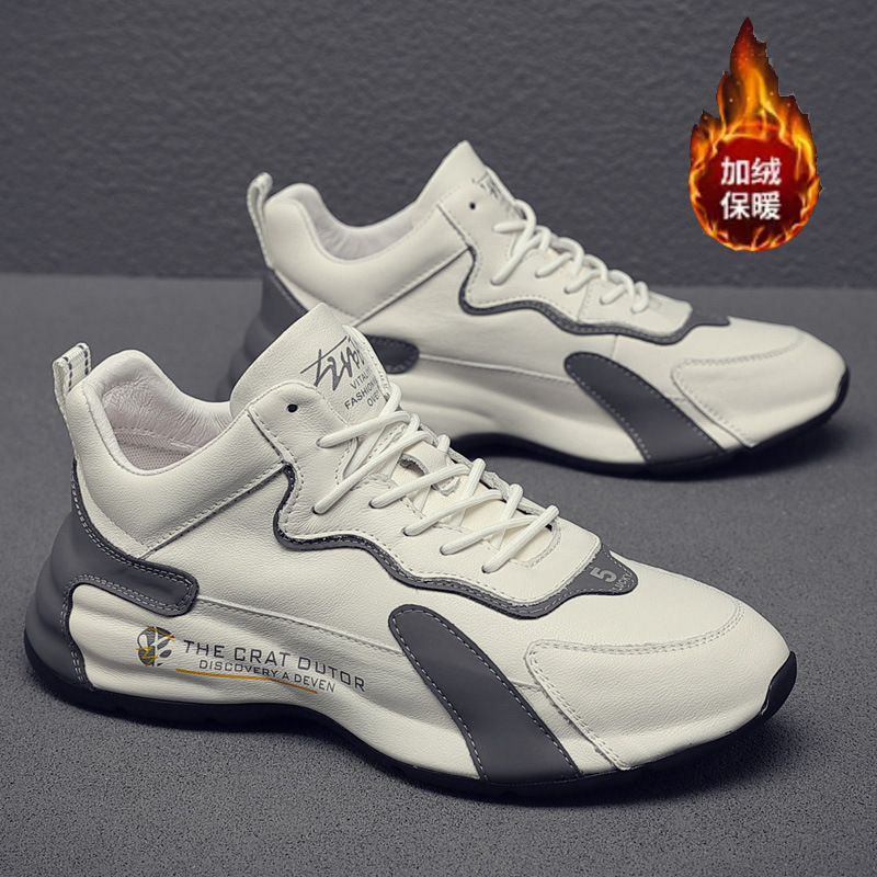 남성 신발 2025 봄 신상 천연 가죽 아빠 신발 남성용 키높이 가죽 밑창 한국 스타일 트렌디 캐주얼 운동화
