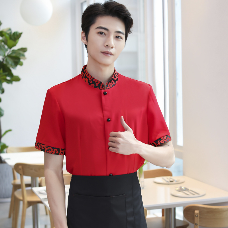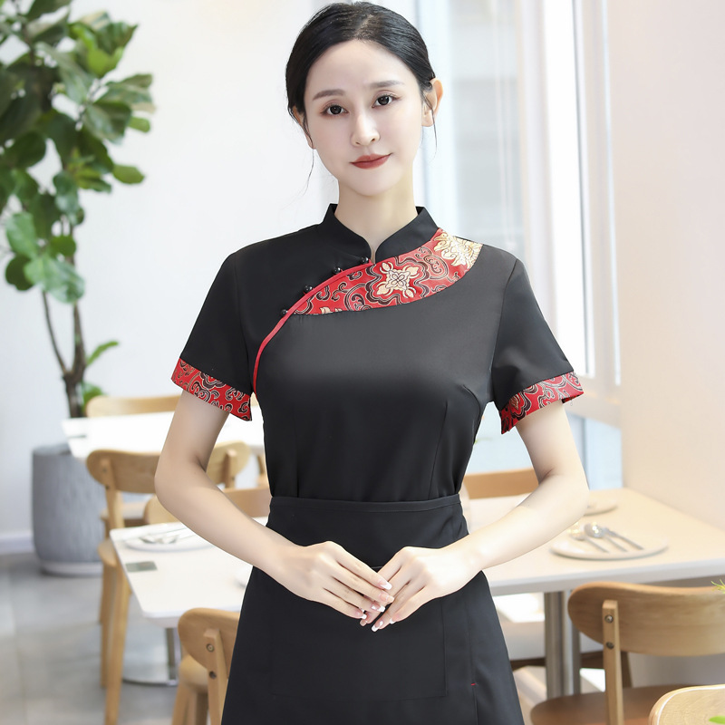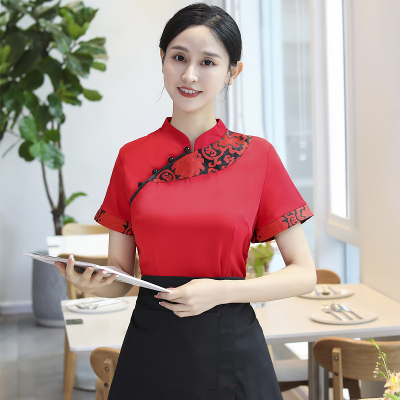 웨이터의 작업복 반팔 취사 호텔 Nongjiale 중국 레스토랑 찻집 냄비 식당 유니폼 여름 원피스 여성 새로운스토어 가기