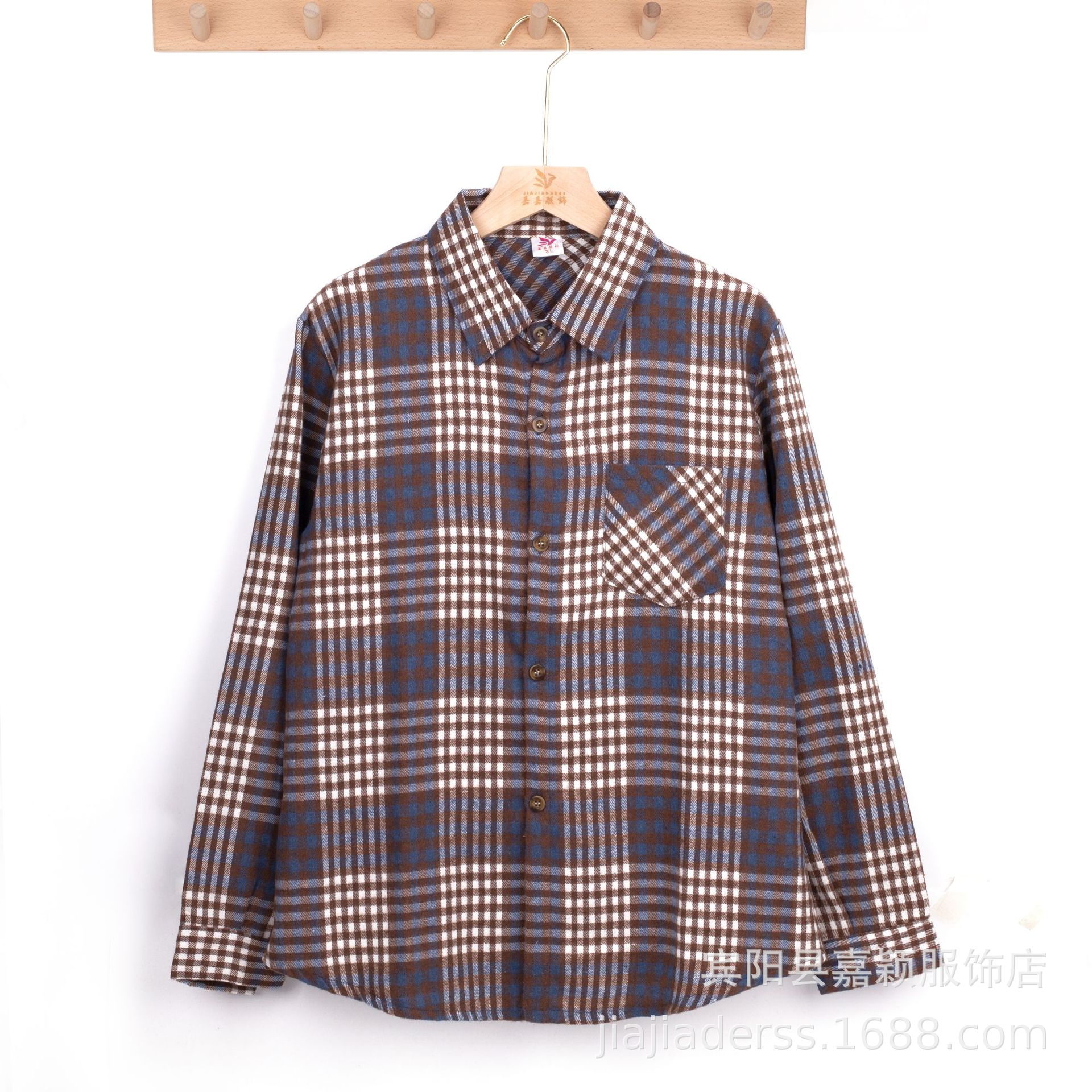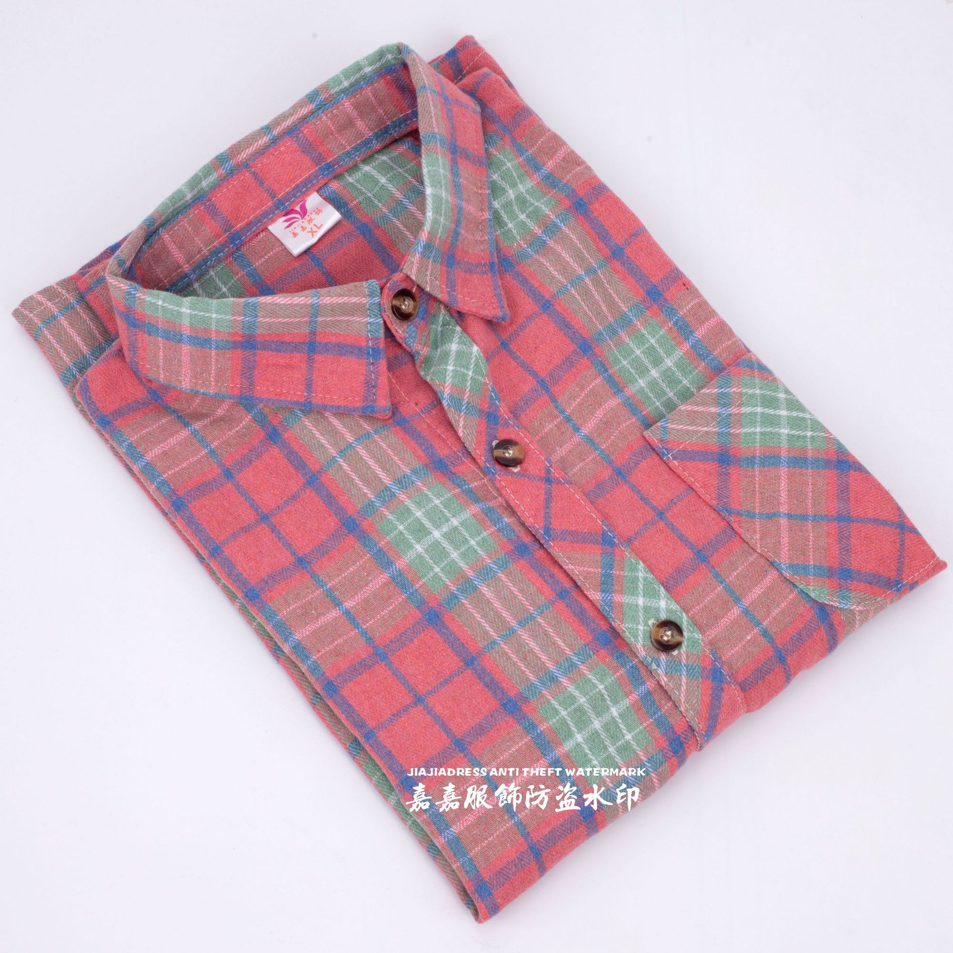 장후 시장에서 달리는 새로운 샌딩 체크 셔츠 여성용 중년 및 노인 라펠 긴팔 셔츠 야시장 노점 공급
