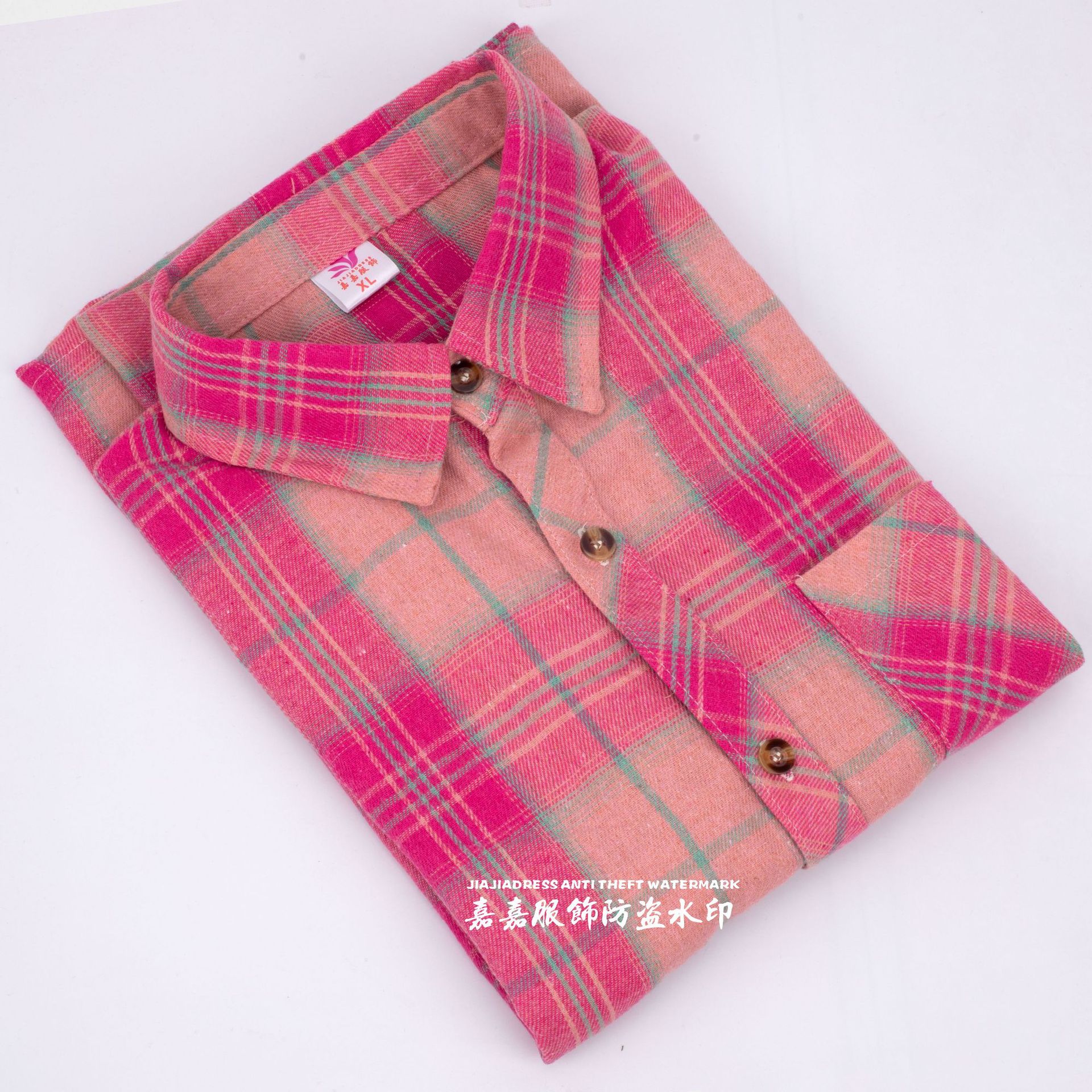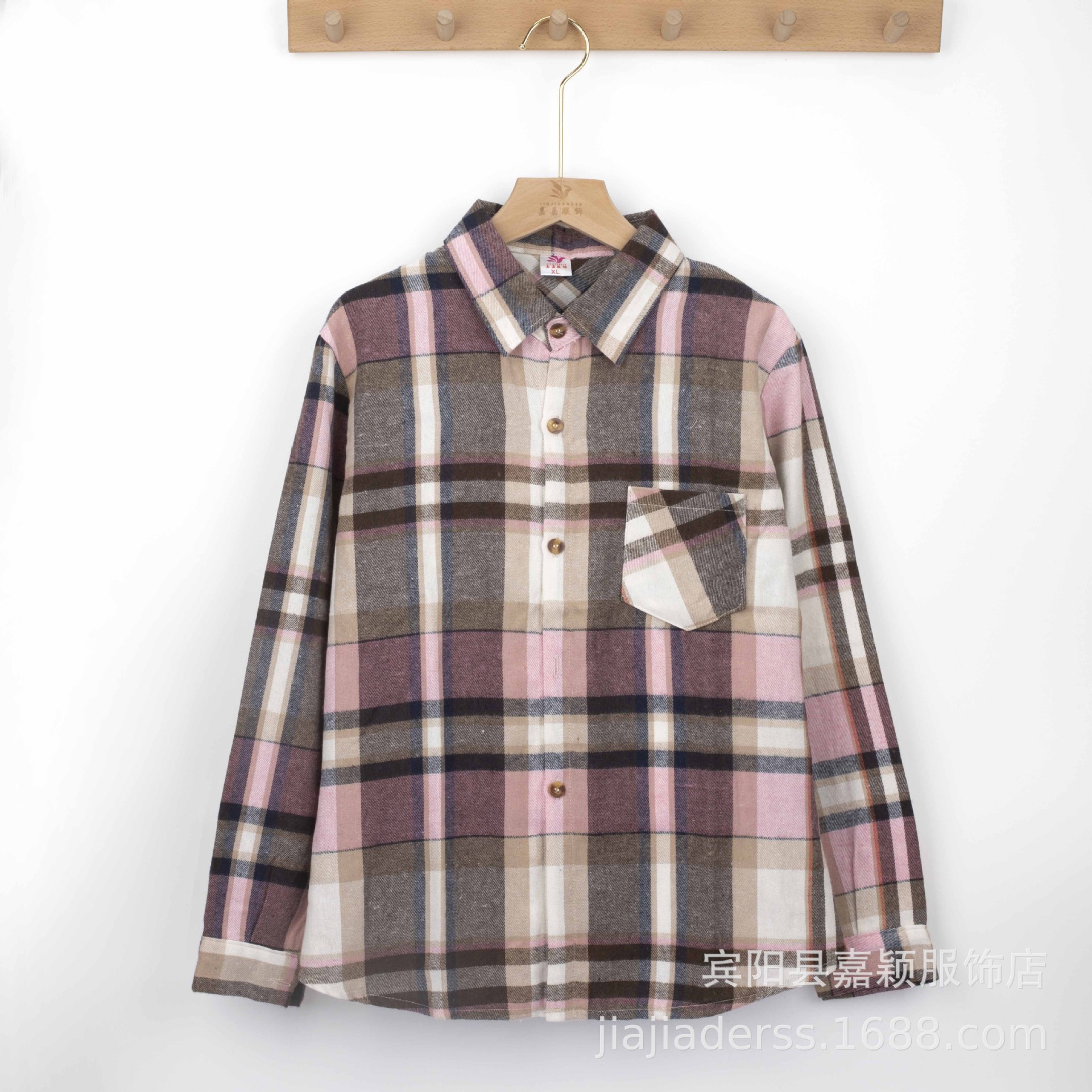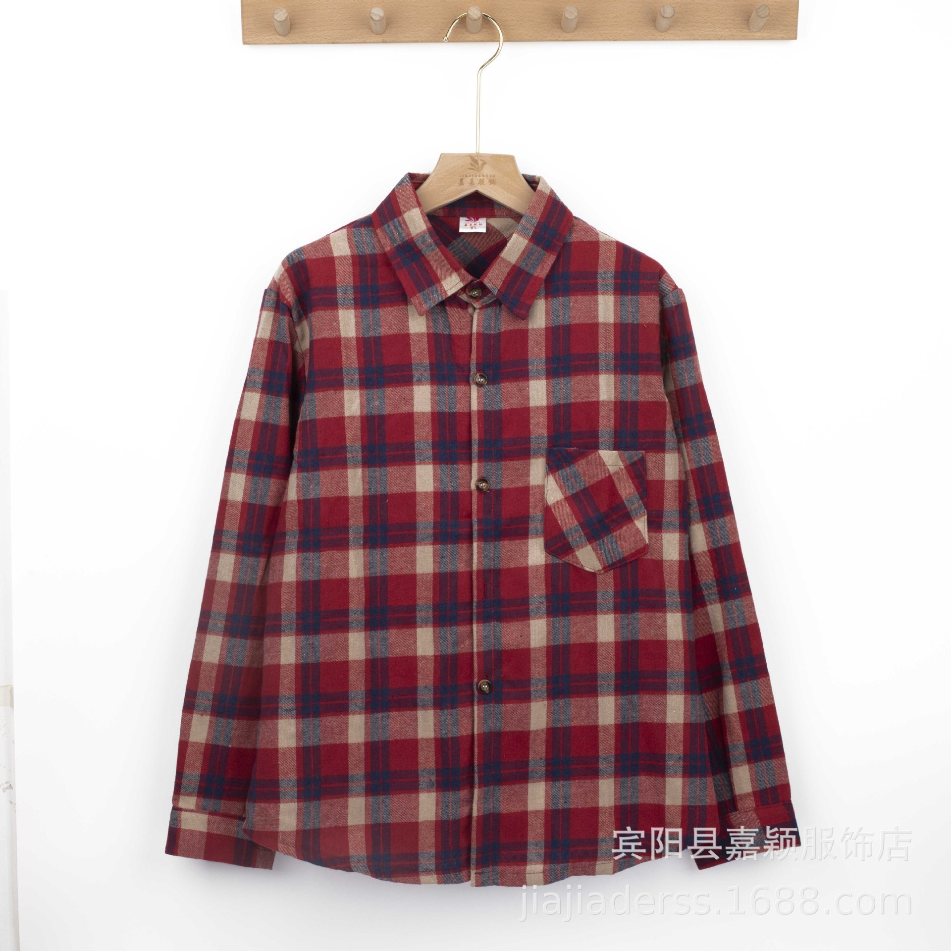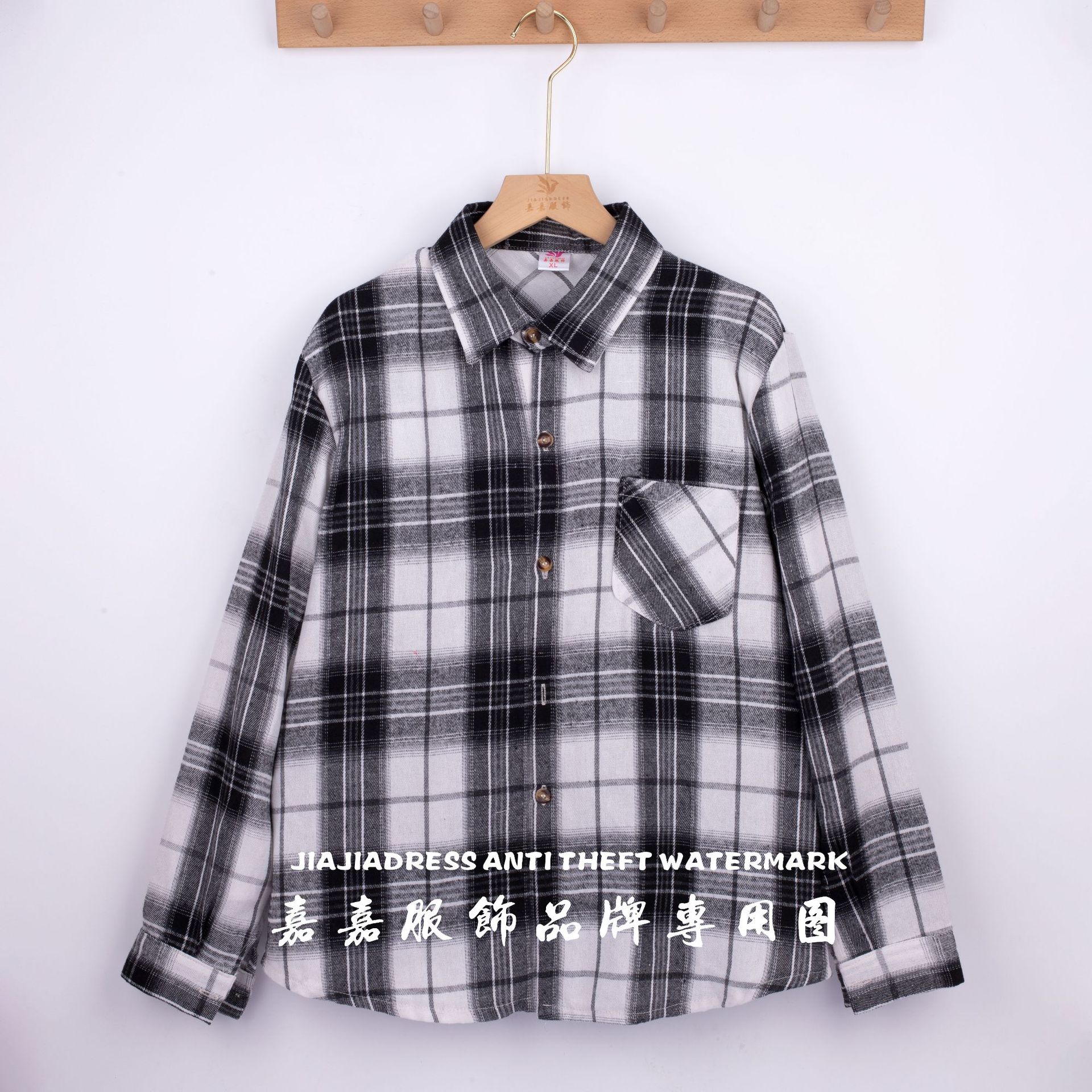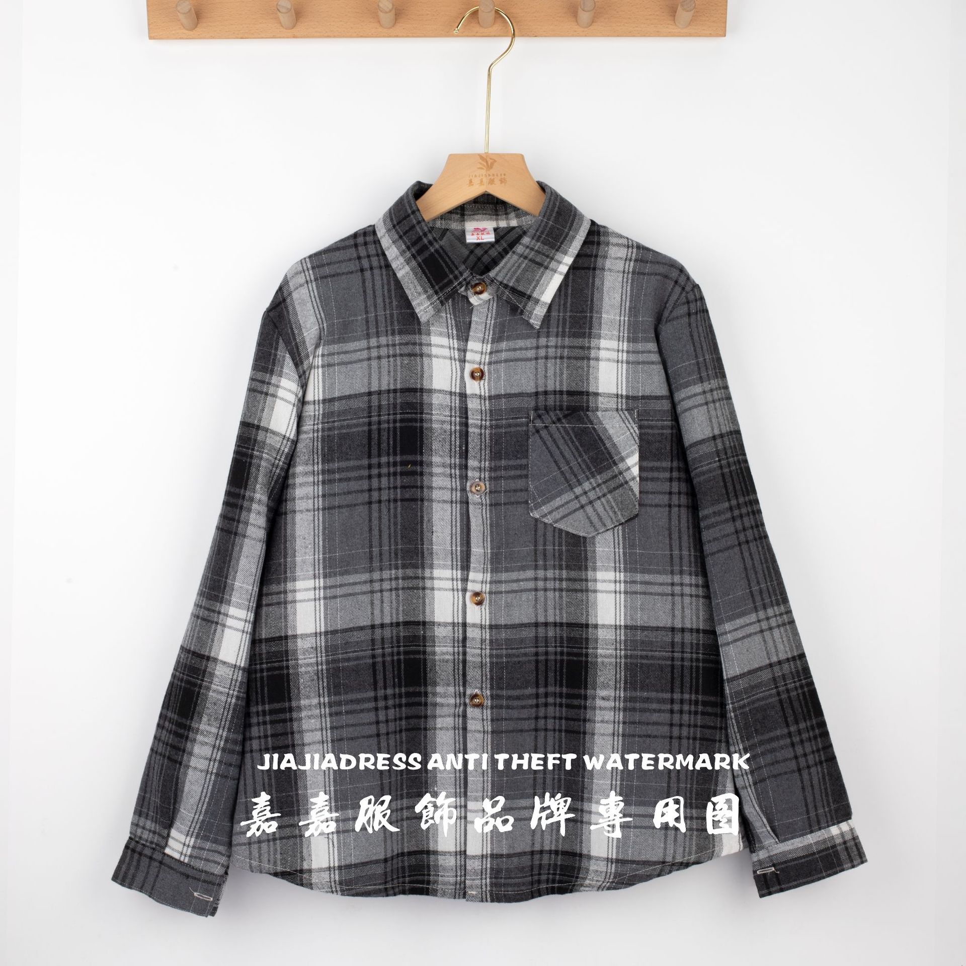 장후 시장에서 달리는 새로운 샌딩 체크 셔츠 여성용 중년 및 노인 라펠 긴팔 셔츠 야시장 노점 공급스토어 가기