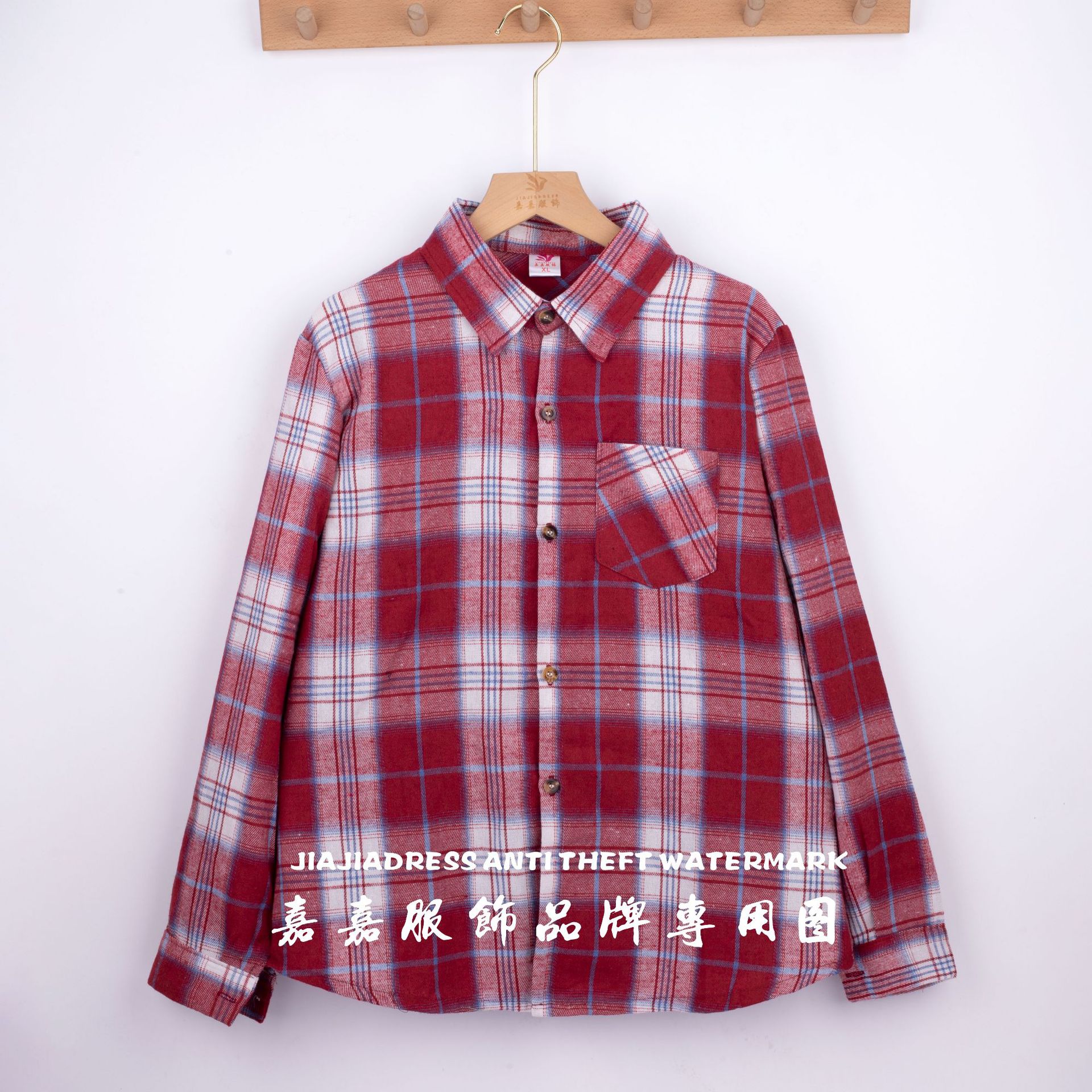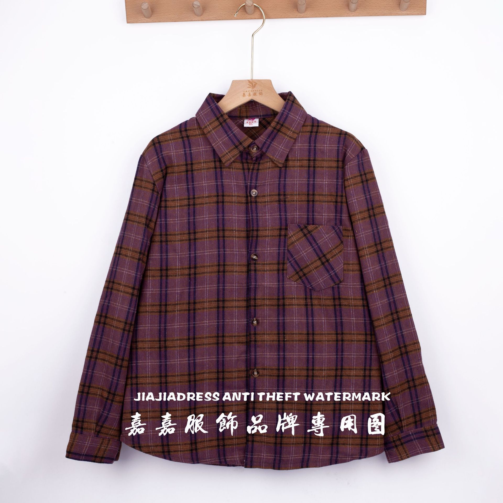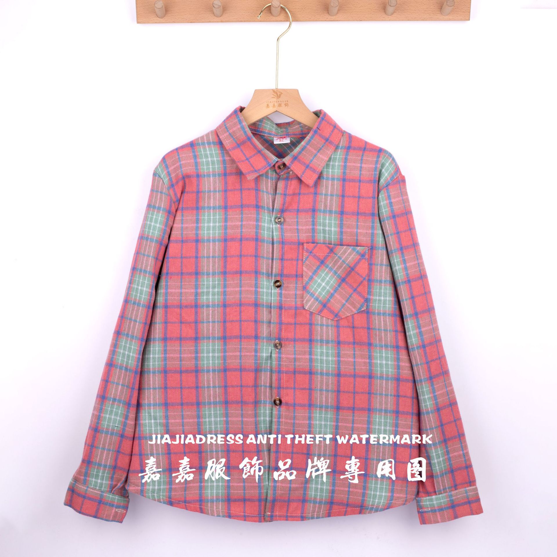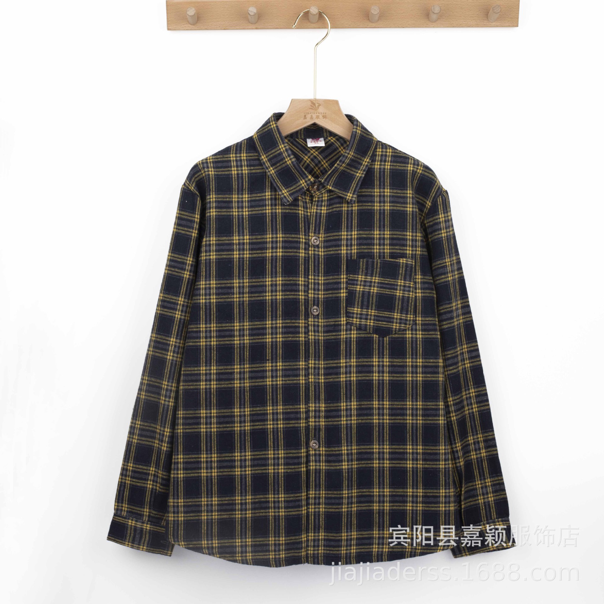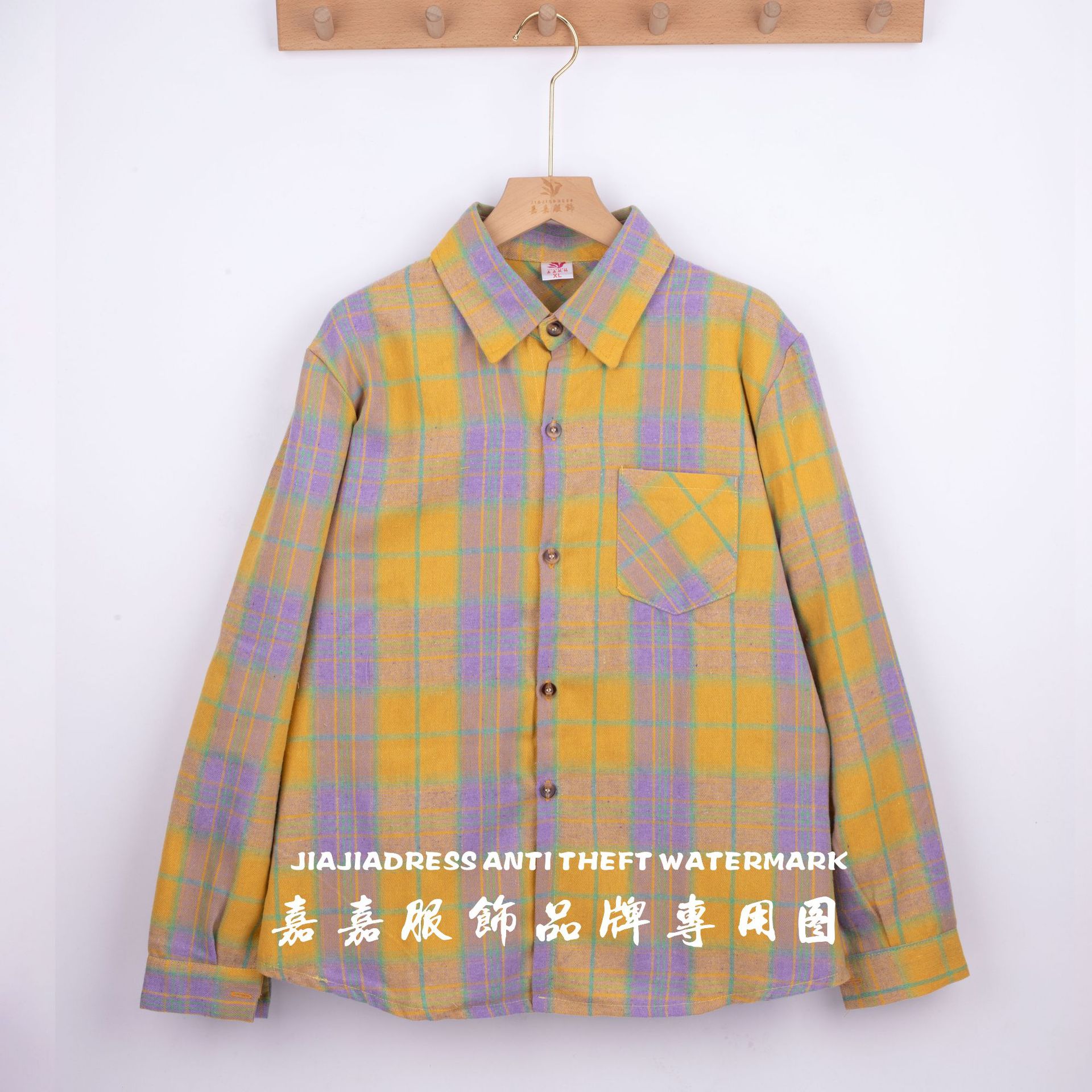 장후 시장에서 달리는 새로운 샌딩 체크 셔츠 여성용 중년 및 노인 라펠 긴팔 셔츠 야시장 노점 공급스토어 가기