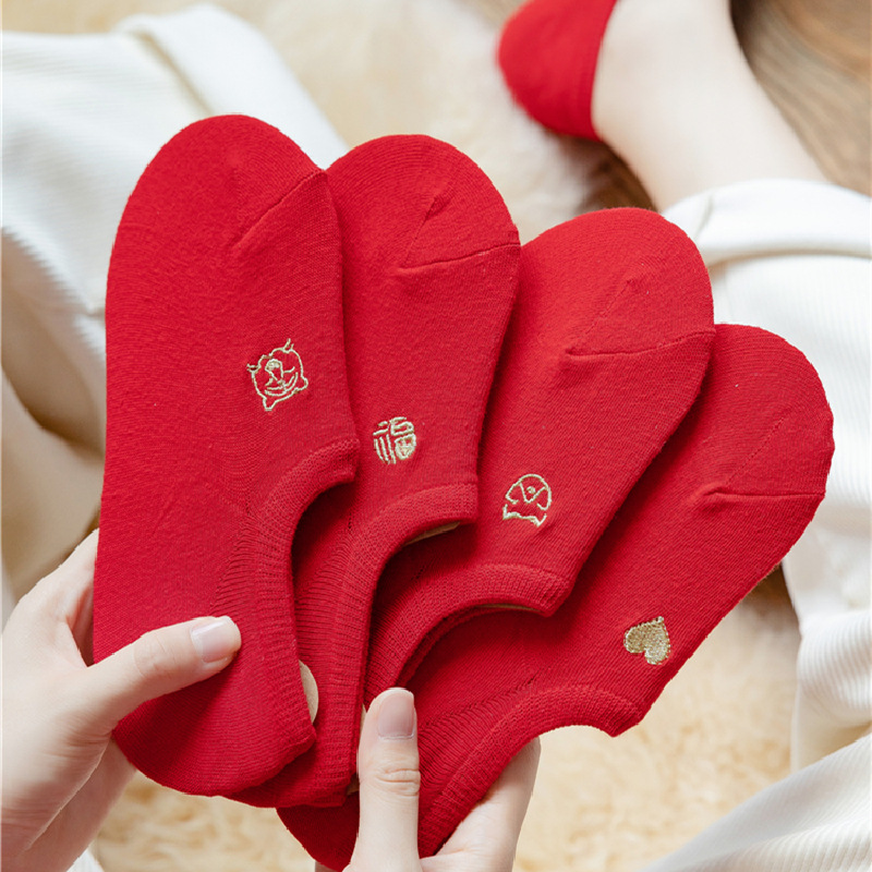 여자의 생활 년 빨간 양말 호랑이 년 선물 남자의 가을과 겨울 착용 양말 커플의면 바닥 큰 빨간 짧은 호랑이 보트 양말