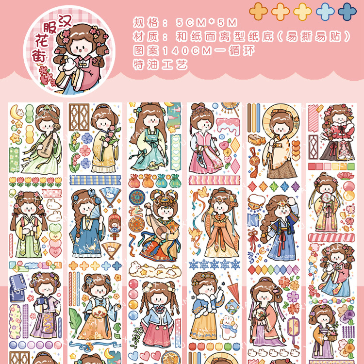 변경 전 캐릭터 특수 오일 테이프 손 계정 장식 스티커 귀여운 원피스 소녀 손 계정 콜라주 소재 스티커스토어 가기
