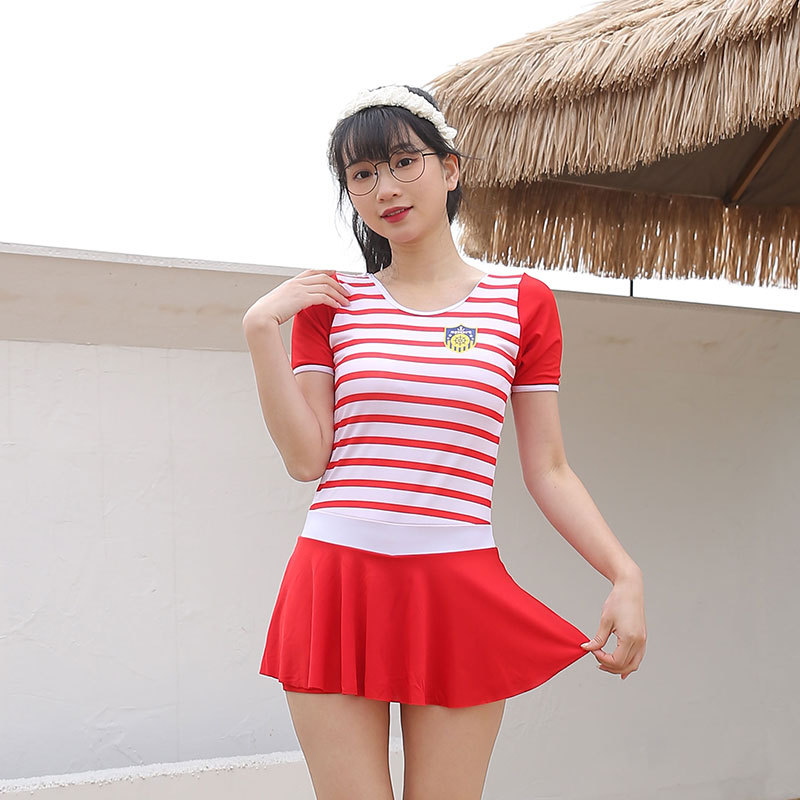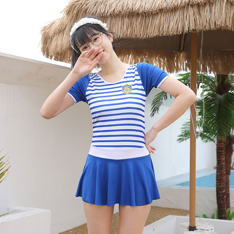 스트라이프 수영복 여자의 여름 스포츠 스타일 달콤한 학생 스플릿 워터 파크 자외선 차단제 작은 신선한 귀여운 소녀 스커트스토어 가기