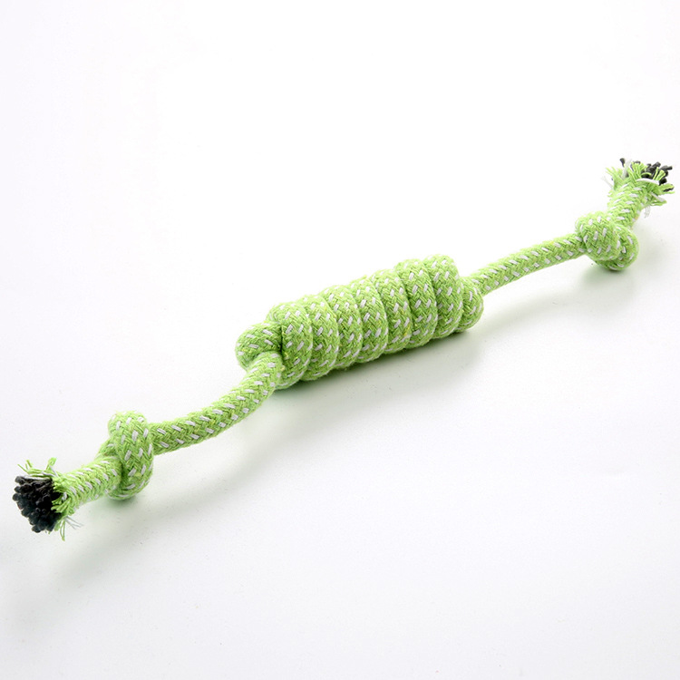 재고 공급 사탕 섹션 면화 로프 드래그 볼 장난감 더블 매듭 면화 로프 애완 동물 장난감 줄다리기 밧줄 매듭 장난감스토어 가기