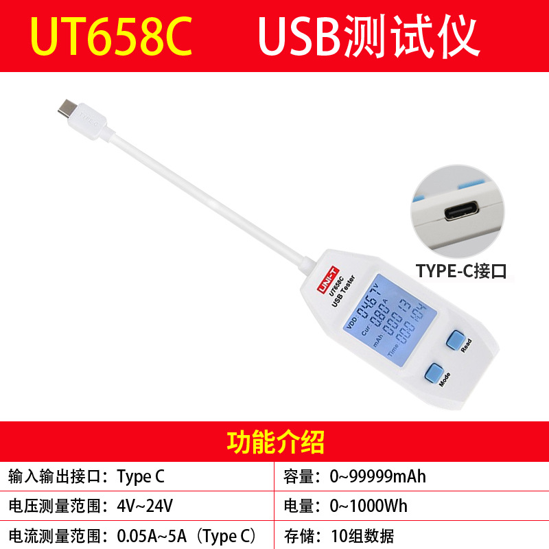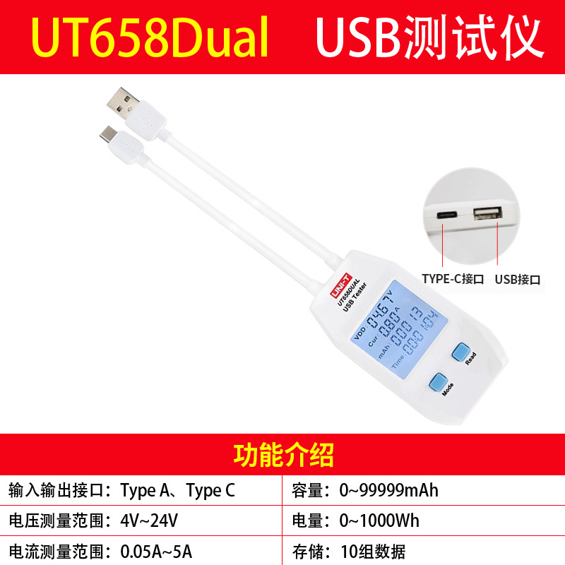 Uleid USB 테스터 UT658DUA/UT658B 현재 용량 모바일 전원 충전 QC 빠른 충전 감지