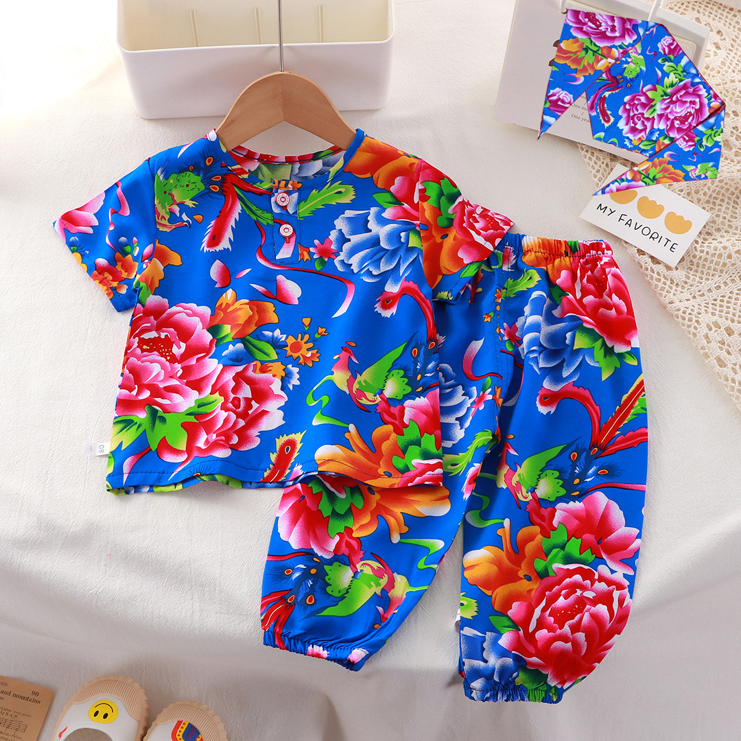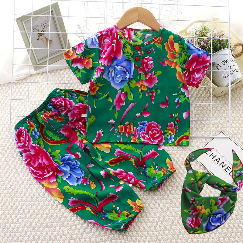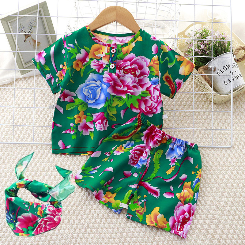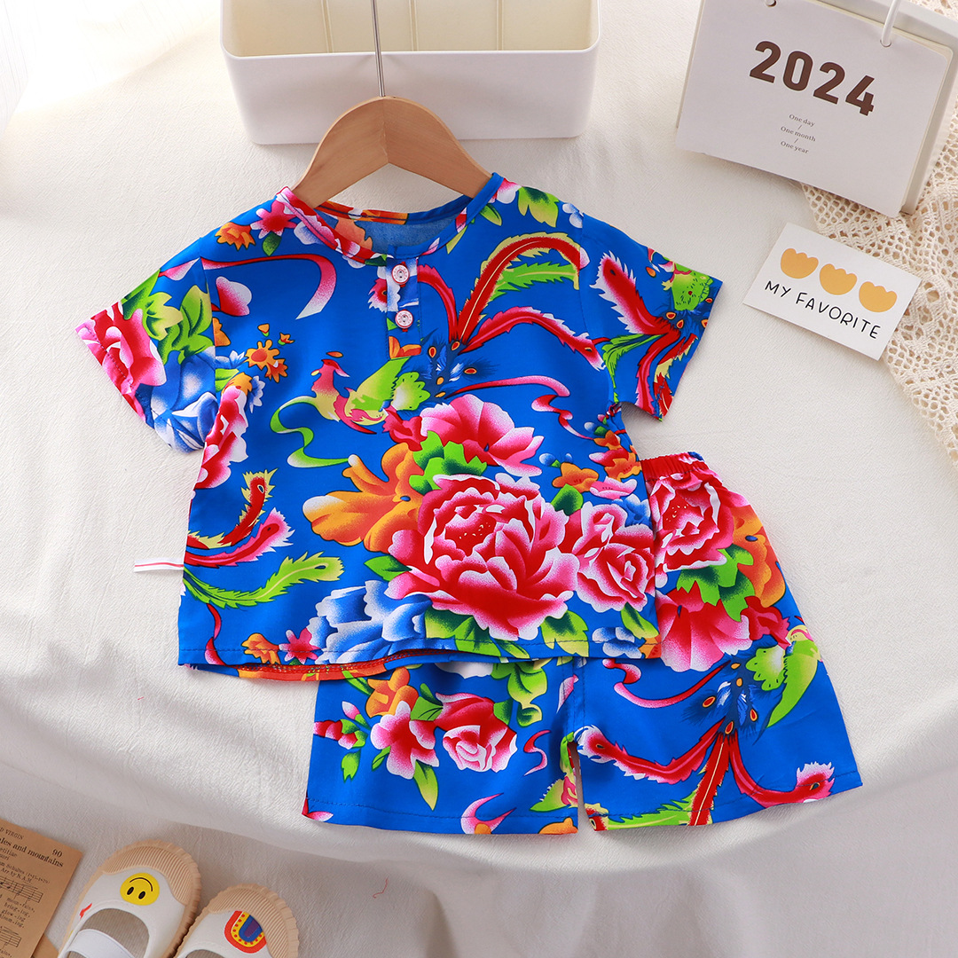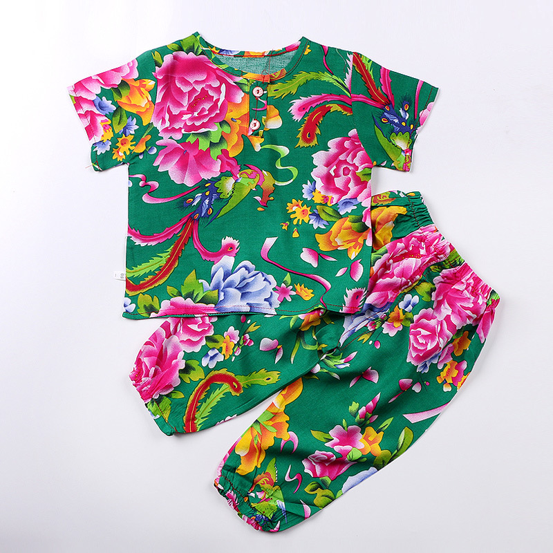 아기 잠옷 북동 큰 꽃 내셔널 윈드 카디건 세트 반팔 가정 에어컨 바람 공장 직공급 머리카락의 세대