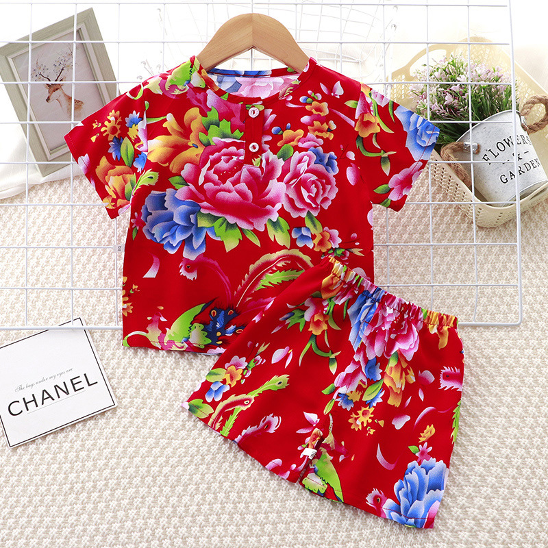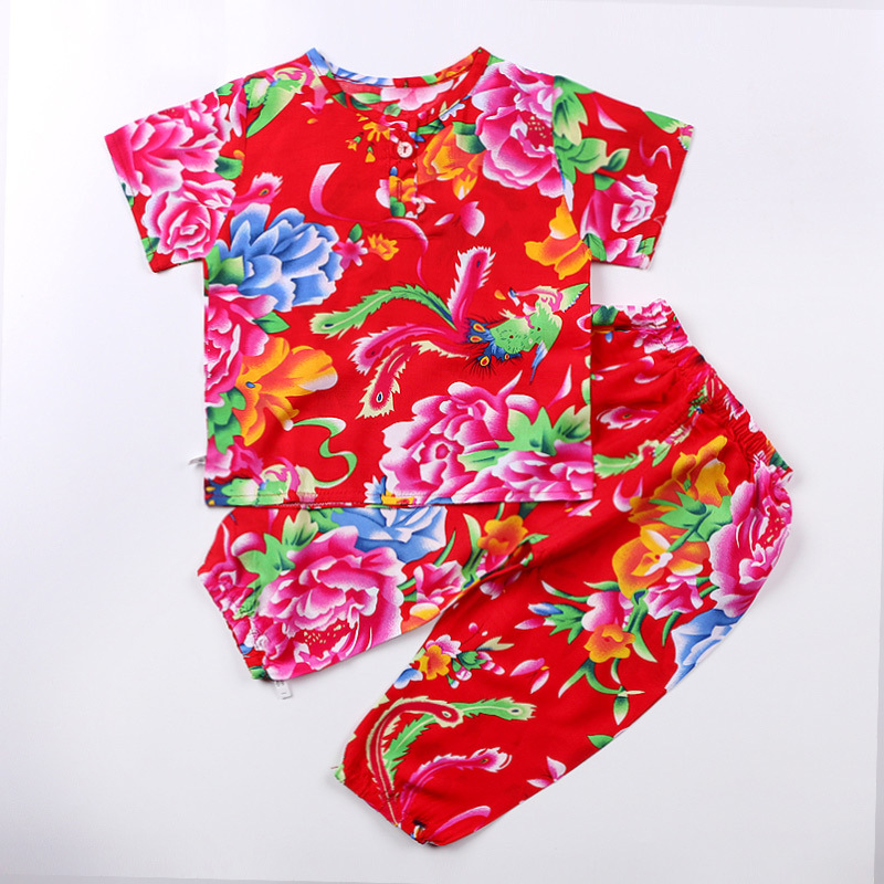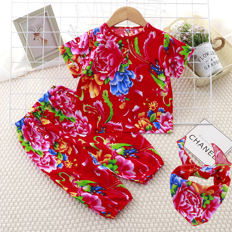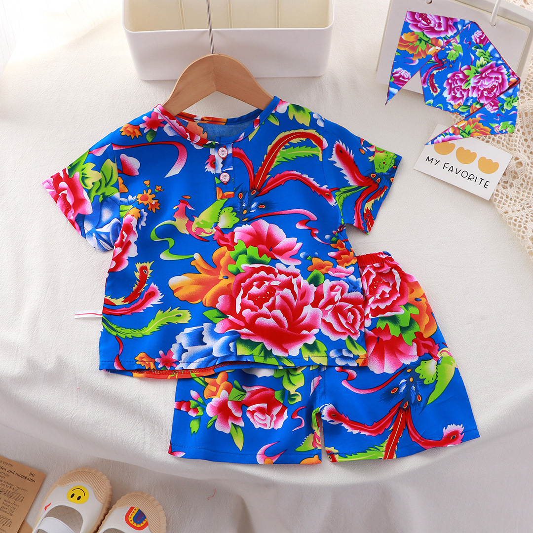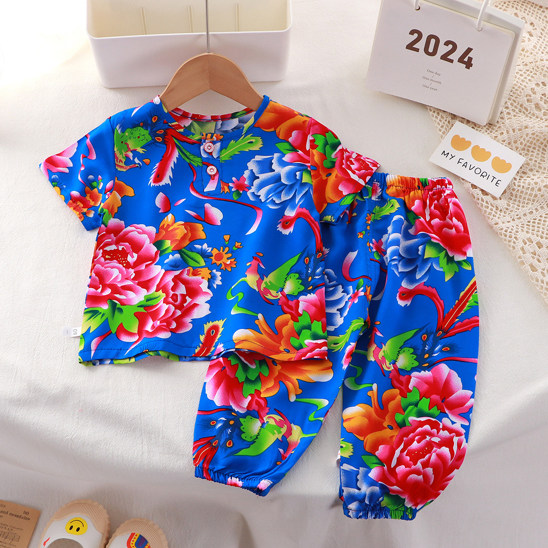 아기 잠옷 북동 큰 꽃 내셔널 윈드 카디건 세트 반팔 가정 에어컨 바람 공장 직공급 머리카락의 세대