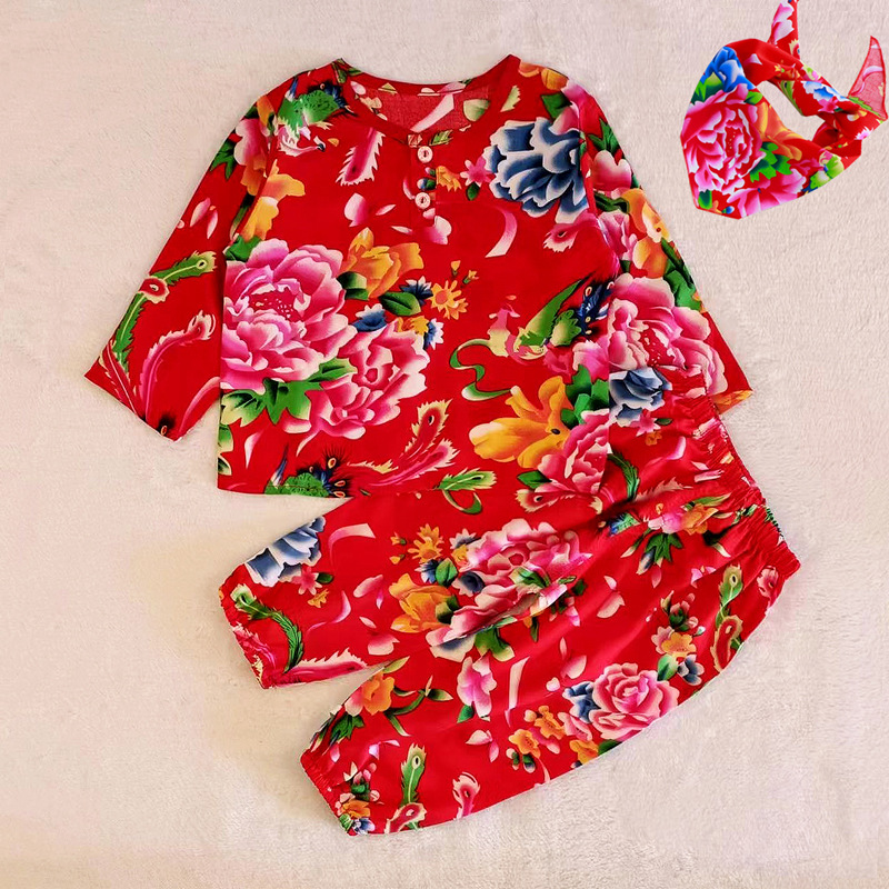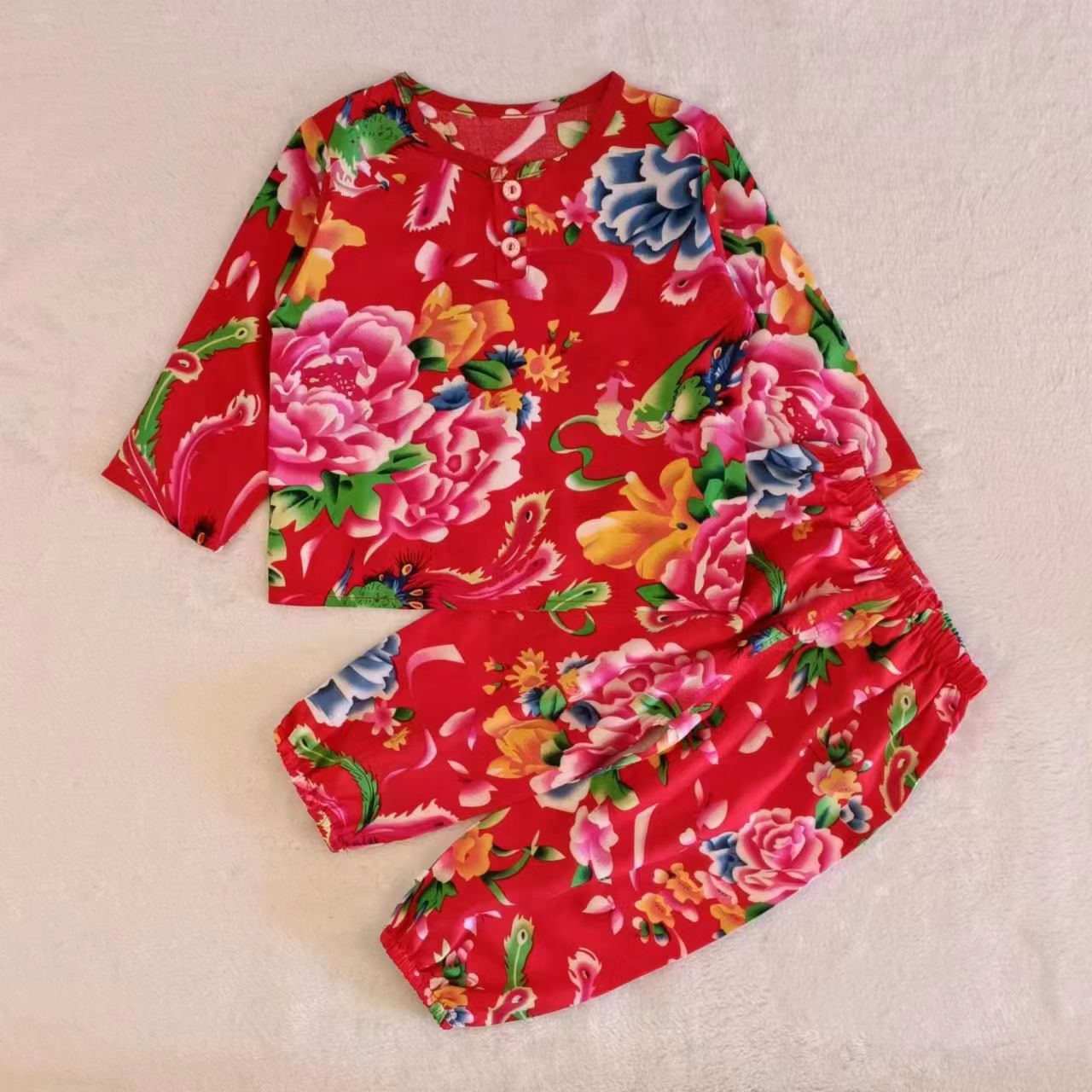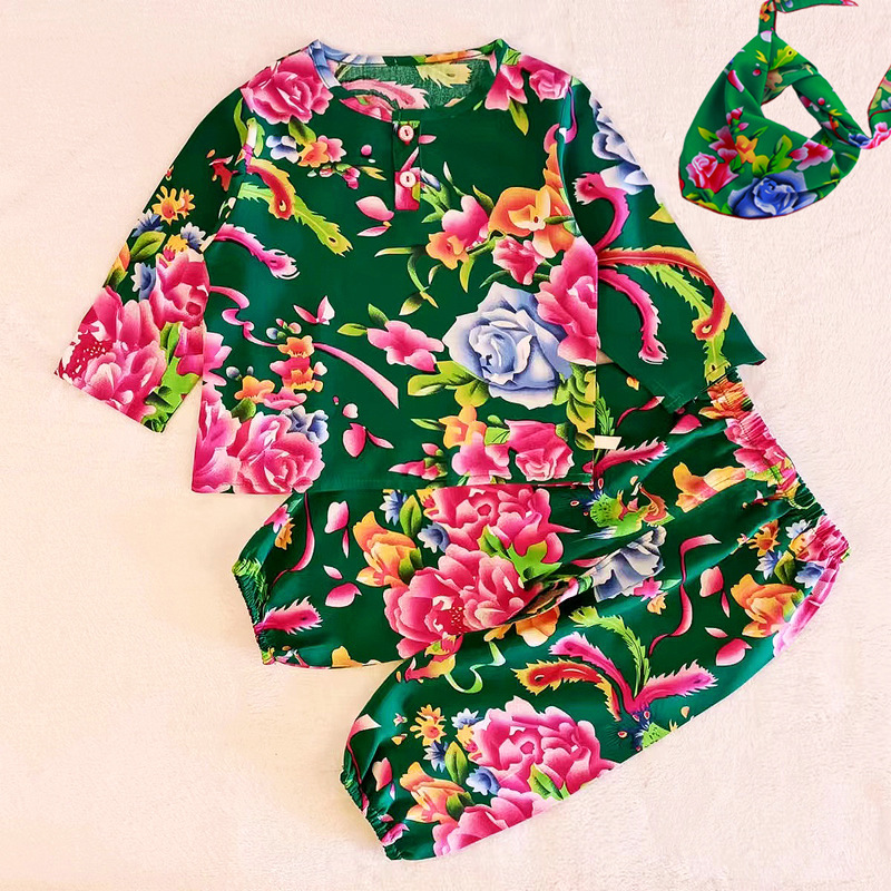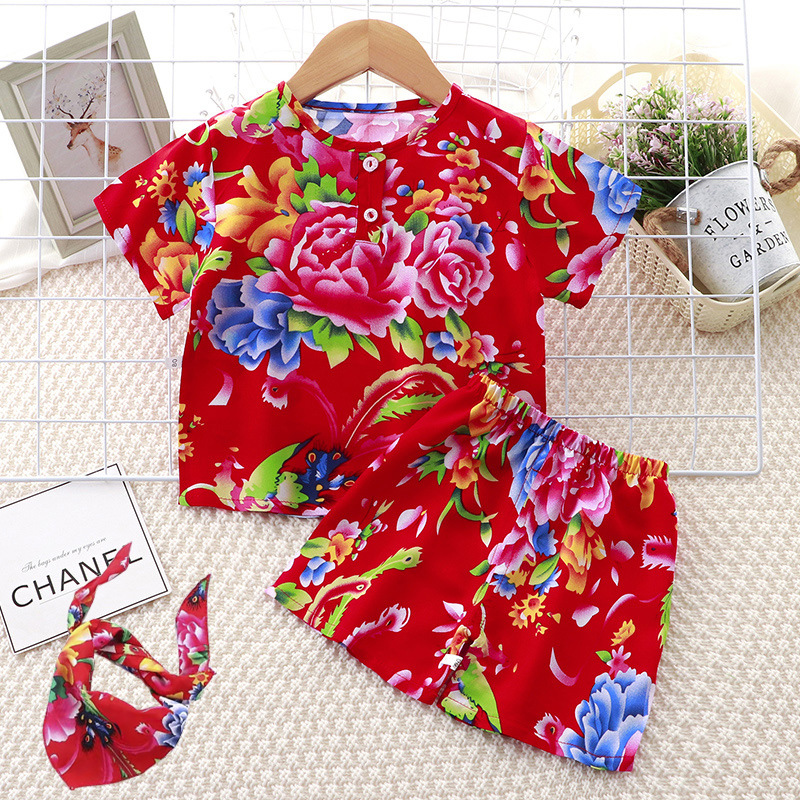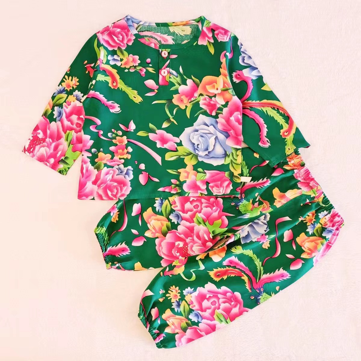 아기 잠옷 북동 큰 꽃 내셔널 윈드 카디건 세트 반팔 가정 에어컨 바람 공장 직공급 머리카락의 세대