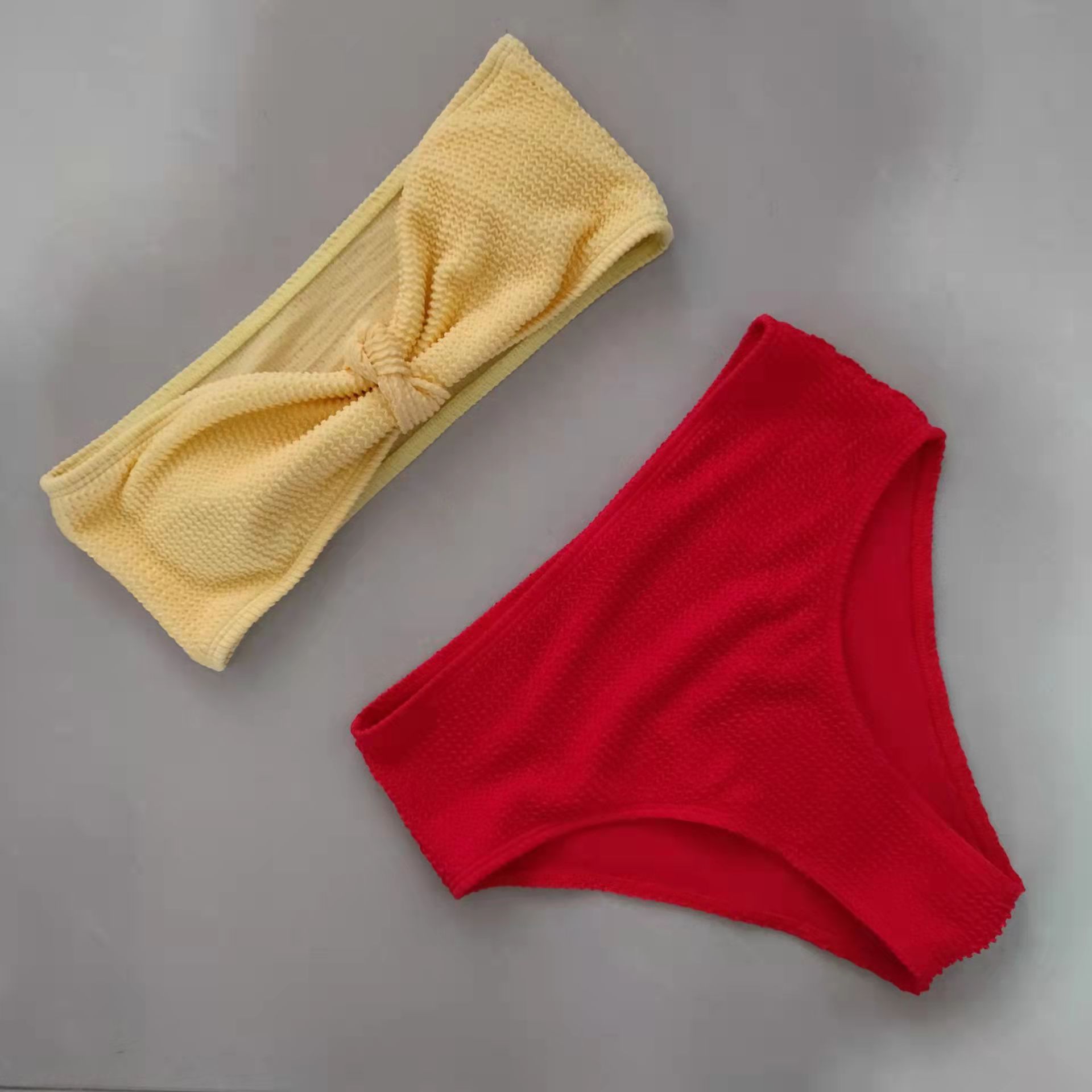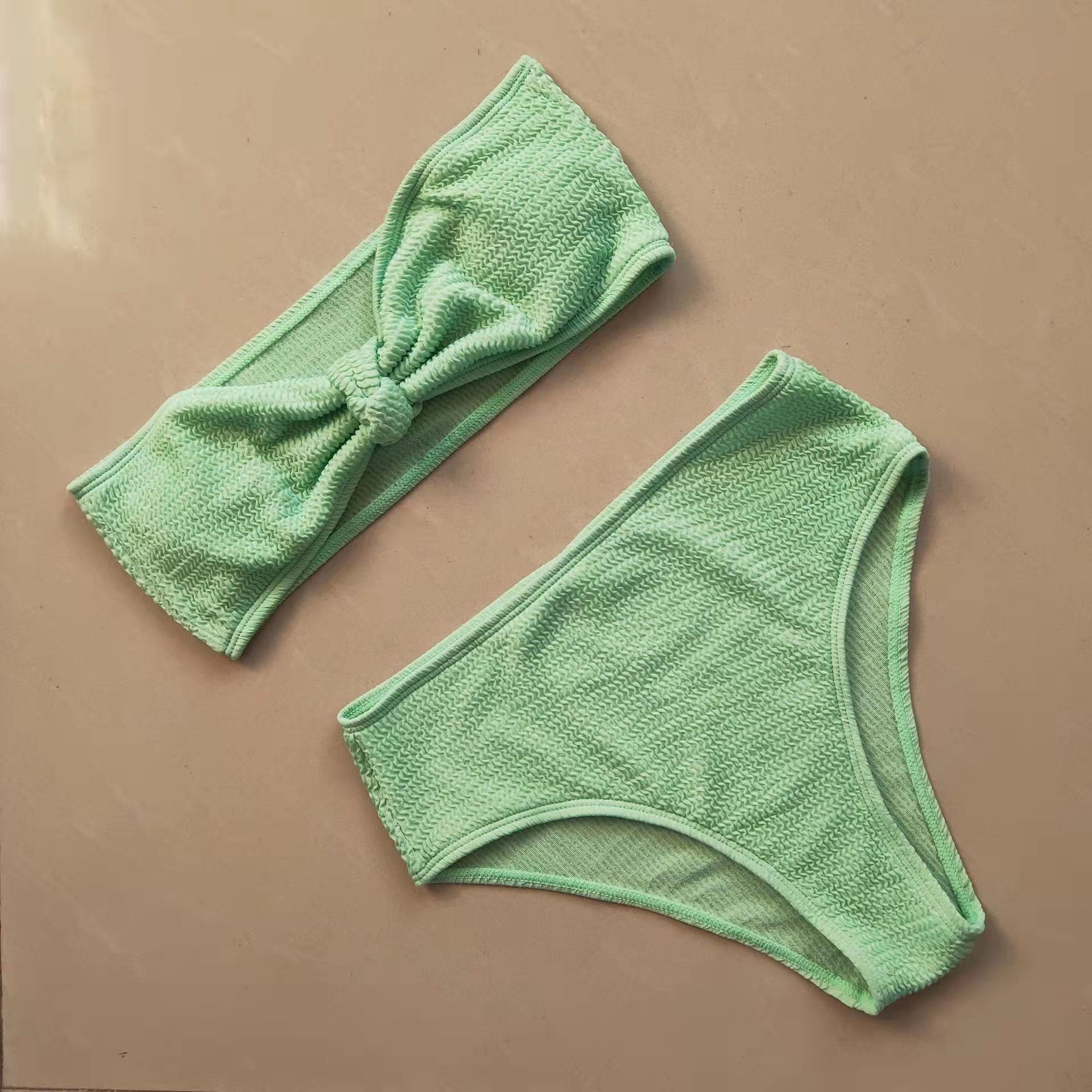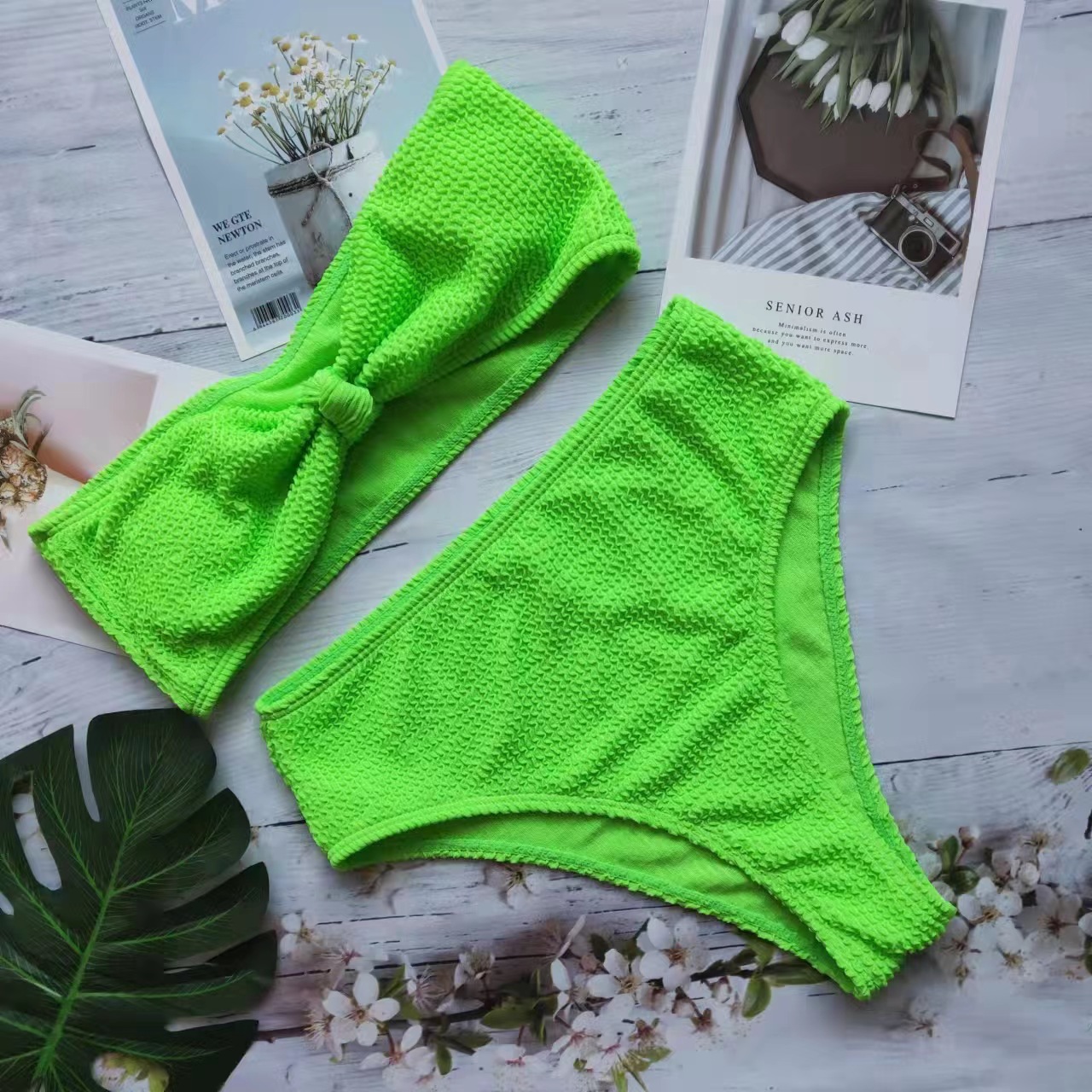 2022 여성 수영복, 대외 무역 비키니, 튜브탑 스플릿 비키니 원단, 하이웨이스트 수영복, 타이트한 핏의 리본 디자인