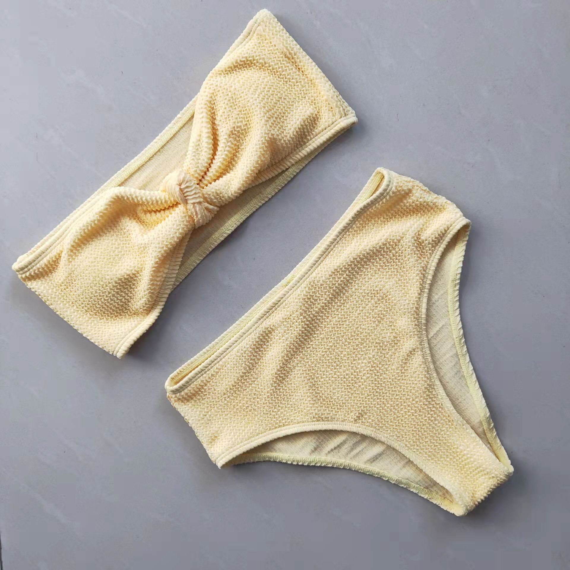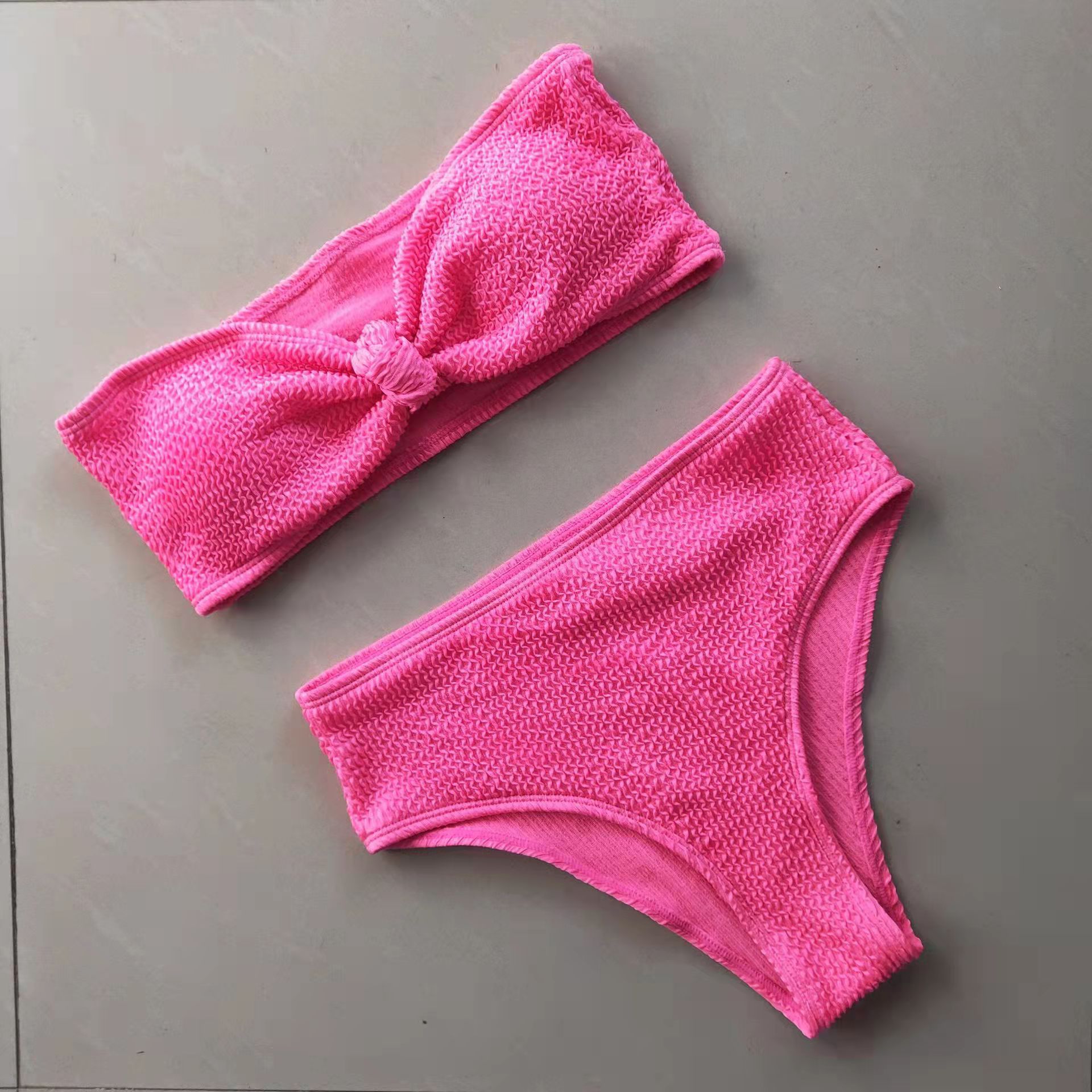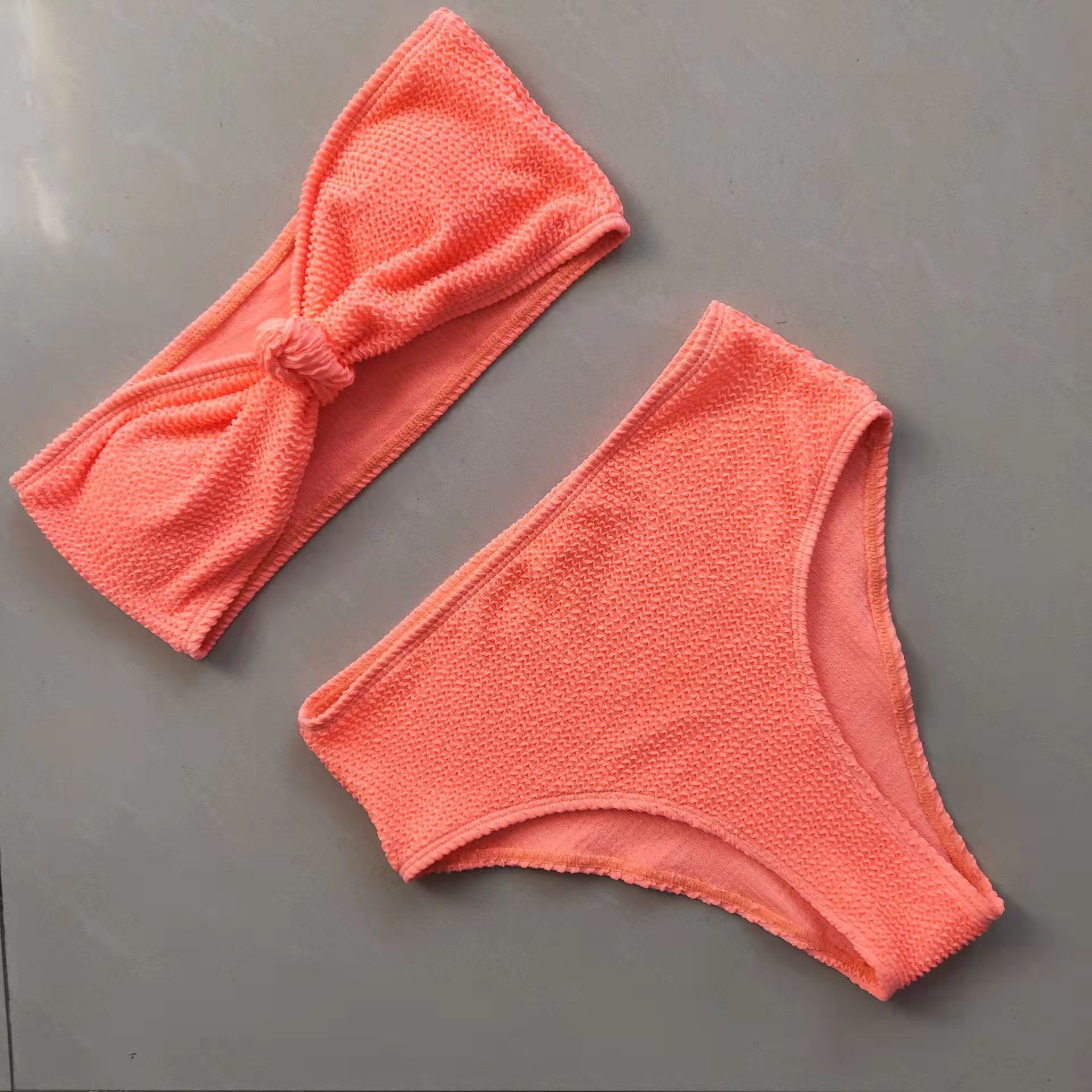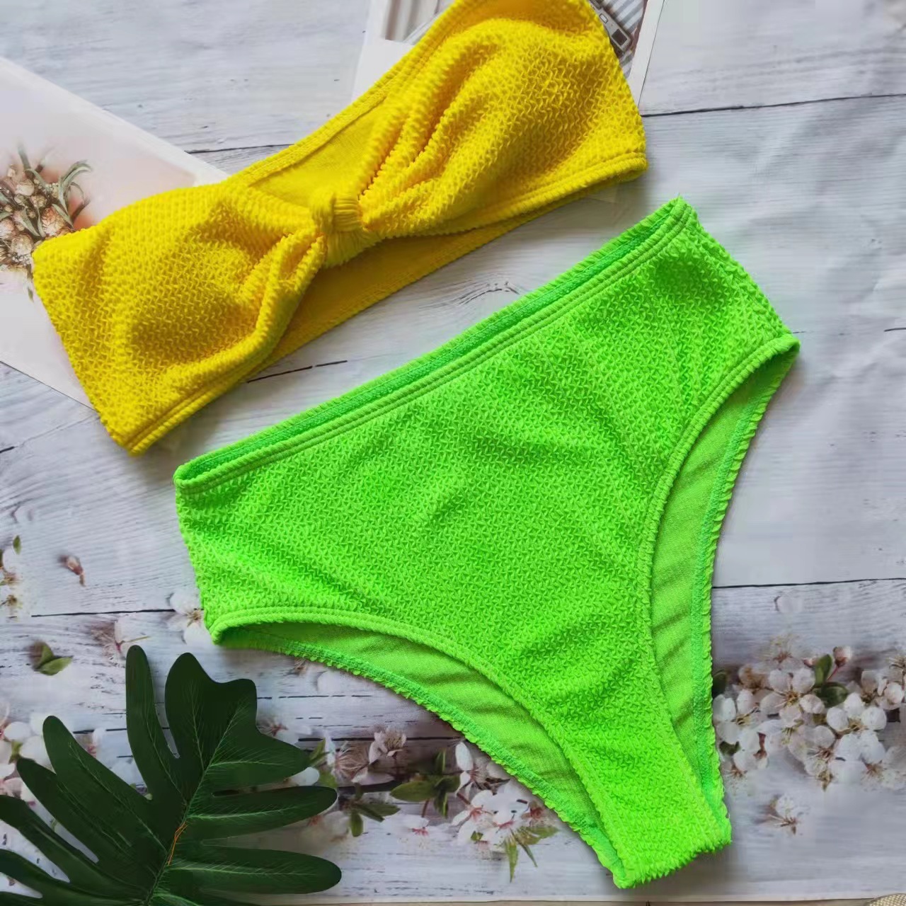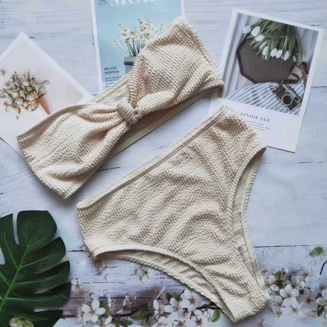 2022 여성 수영복, 대외 무역 비키니, 튜브탑 스플릿 비키니 원단, 하이웨이스트 수영복, 타이트한 핏의 리본 디자인스토어 가기
