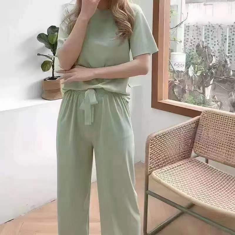 여름 아이스 실크 잠옷 여자의 가정 옷 아이스 쿨 퀸 소프트 세트 홈 캐주얼 반팔 반바지 투피스 세트스토어 가기