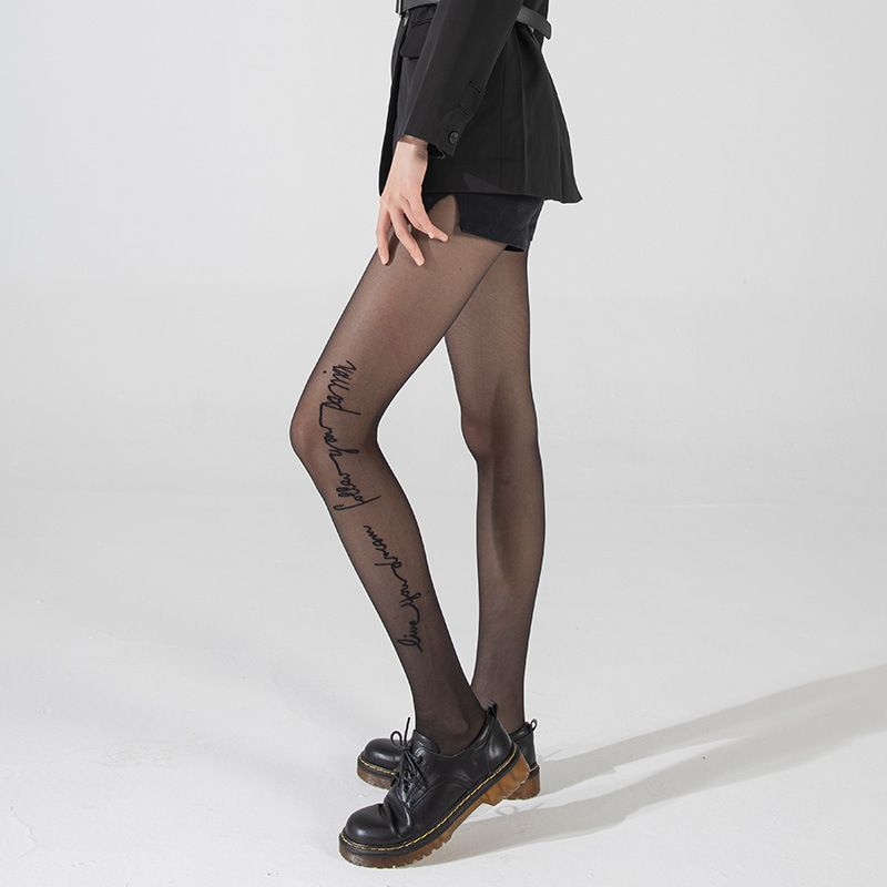 물방울 무늬 스타킹 블랙 시스루 메쉬 레터 로리타 스타일 봄 여름 얇은 시스루 팬티스타킹 백라인 자수 양말 레터 자수