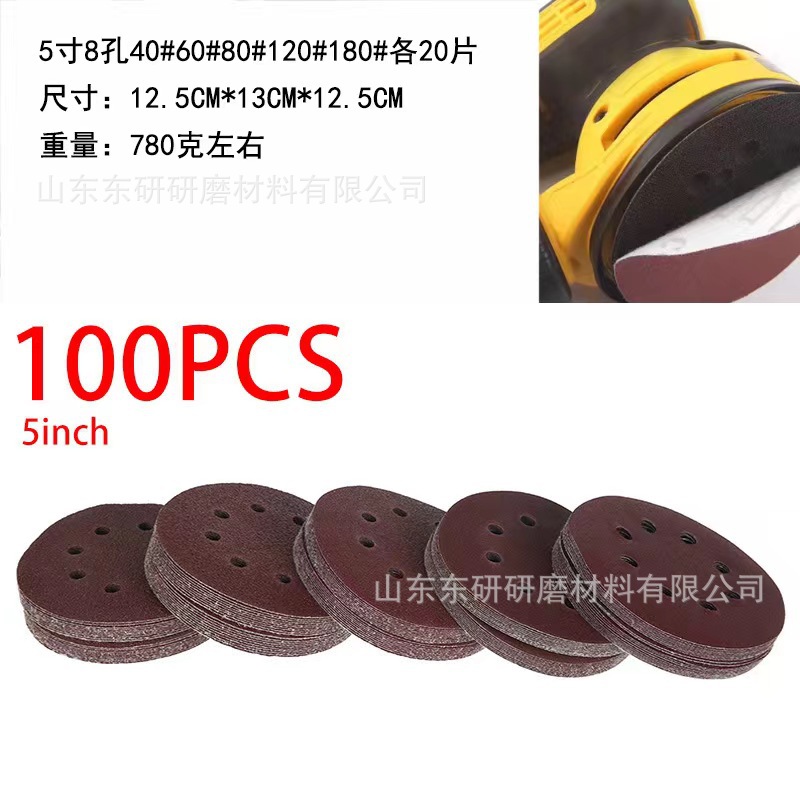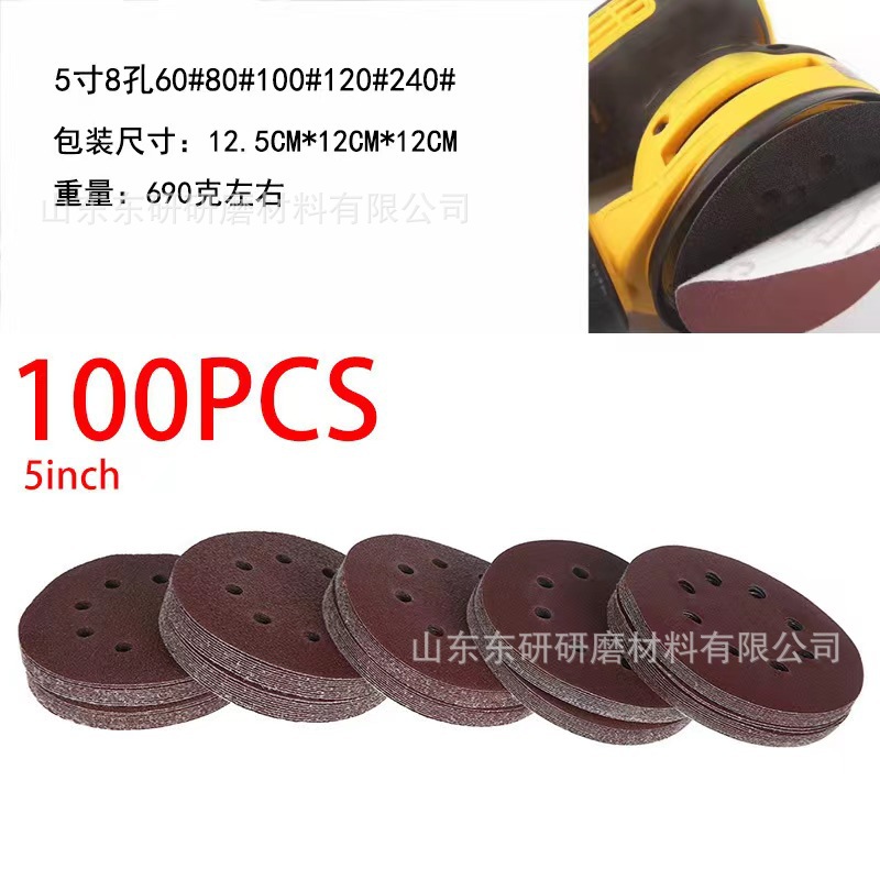 • 빨간색 5인치 8홀 샌딩 페이퍼 - P100