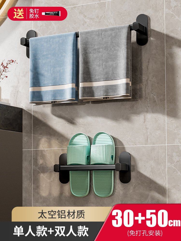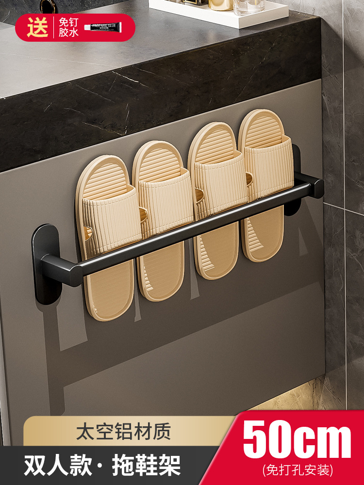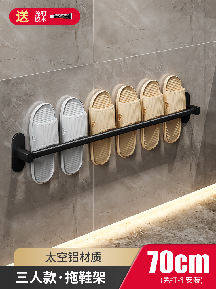 구멍을 뚫을 필요 없는 슬리퍼 걸이, 벽걸이형 알루미늄 수건걸이, 문 뒤 욕실 신발장, 수납 선반, 공간 절약형스토어 가기