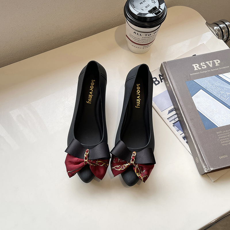여성용 레인 슈즈 새로운 성인 비오는 날 방수 미끄럼 방지 싱글 신발 물 신발 발가락 쐐기 부드러운 바닥 젤리 접착제 신발 크로스 보더스토어 가기