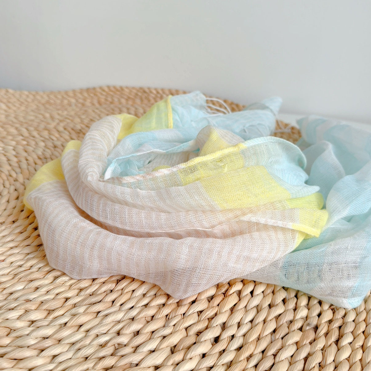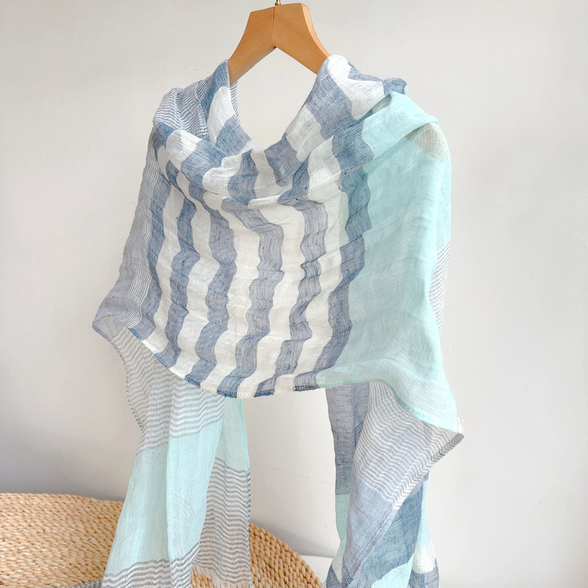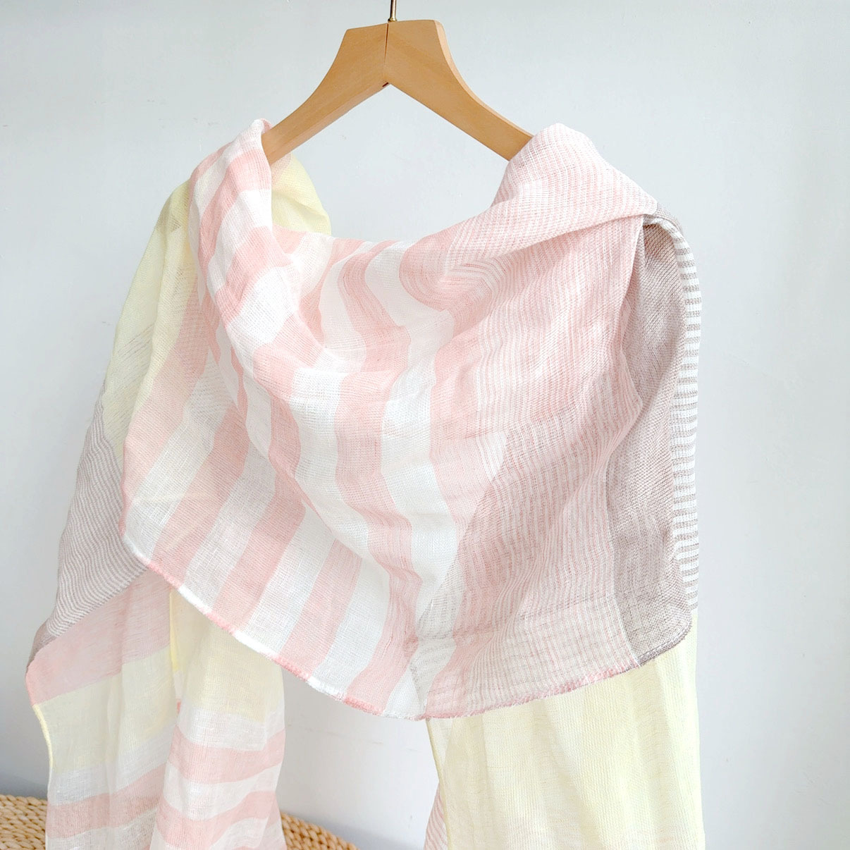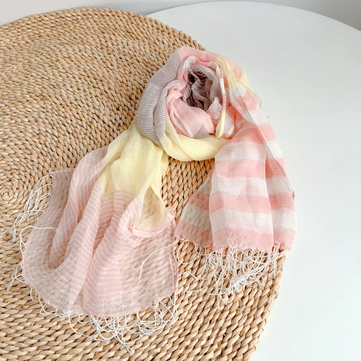 봄과 여름 얇은 면화와 리넨 줄무늬 스카프 예술적 모든 경기 부드러운 목 보호 스카프 여성 여행 목도리 2023 신제품